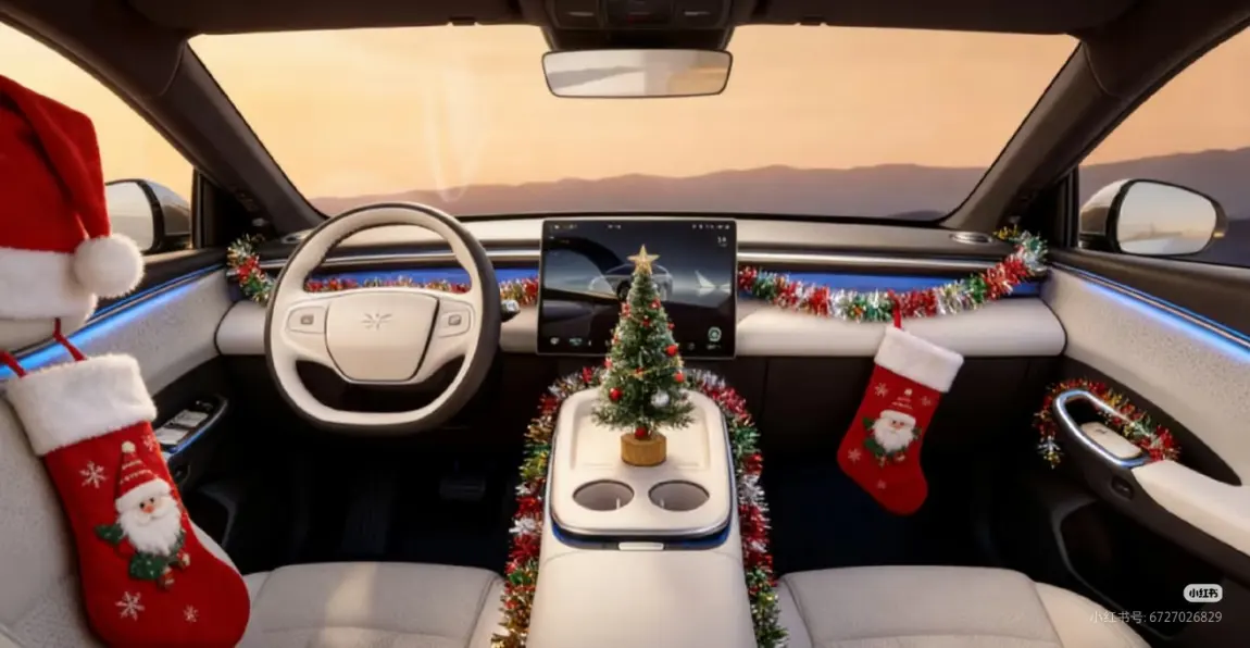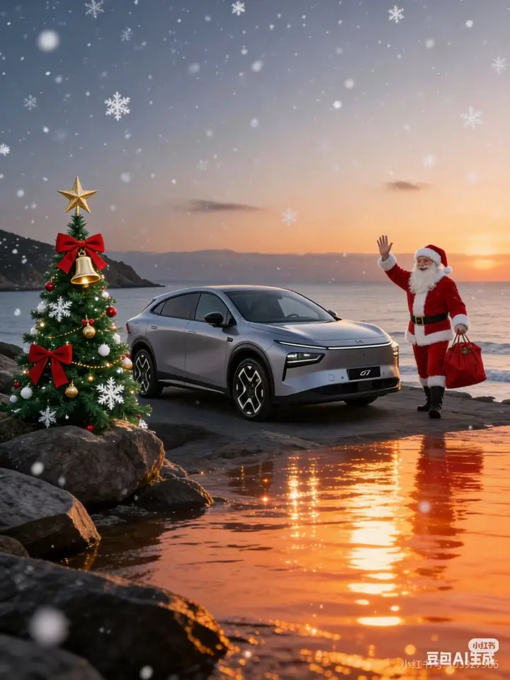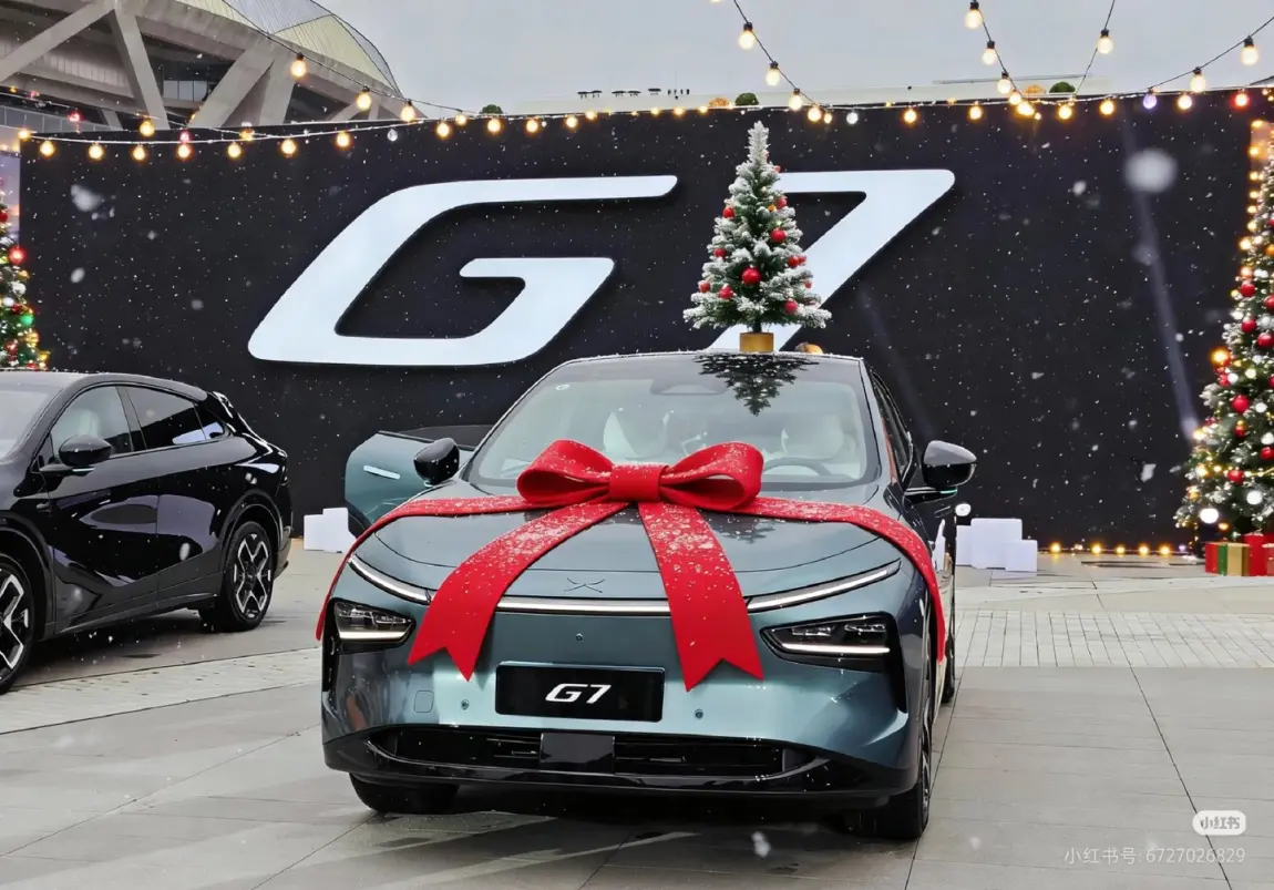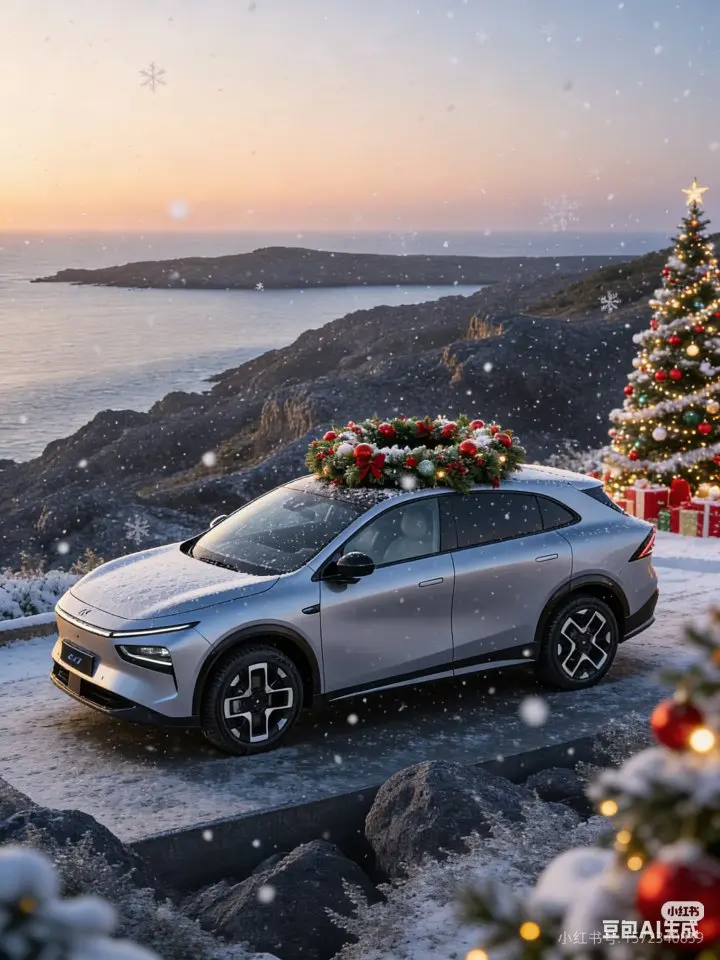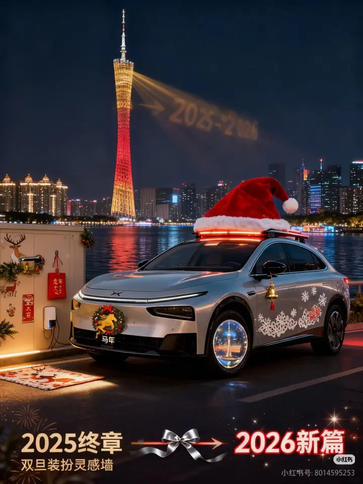 #我的圣诞魔力座驾# 25年的故事即将终章,2026的精彩期待开场。圣诞节也快来了,小鹏G7也换上了节日盛装!车顶的圣诞装饰俏皮灵动,车身的渐变花纹温柔雅致,车身缀上红绒圣诞花环,车顶立着迷你圣诞树,车门贴满雪花与元旦烟花贴纸,科技感线条碰撞圣诞红、新年金!静谧的雪地只留光影随行,智能座舱里暖意融融,这是属于科技控的圣诞浪漫,让奔赴的每段路都裹着冬日温柔。 驾着G7穿梭城市,让圣诞的浪漫与元旦的期许,都随车轮一起奔赴新征程!在暖融融的节日氛围里,它不止是出行伙伴,更是点亮冬日的一抹亮色!我们一起期待2026的到来!