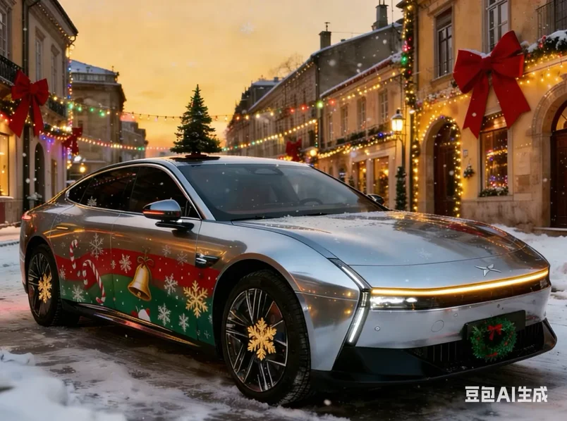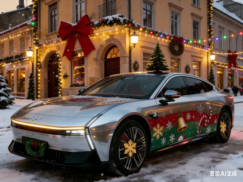 新P7圣诞限定皮肤上线!新月银打底+红绿渐变花纹,雪花灯效+车顶小树,开在路上直接把节日氛围拉满🎄。你想拥有吗😏