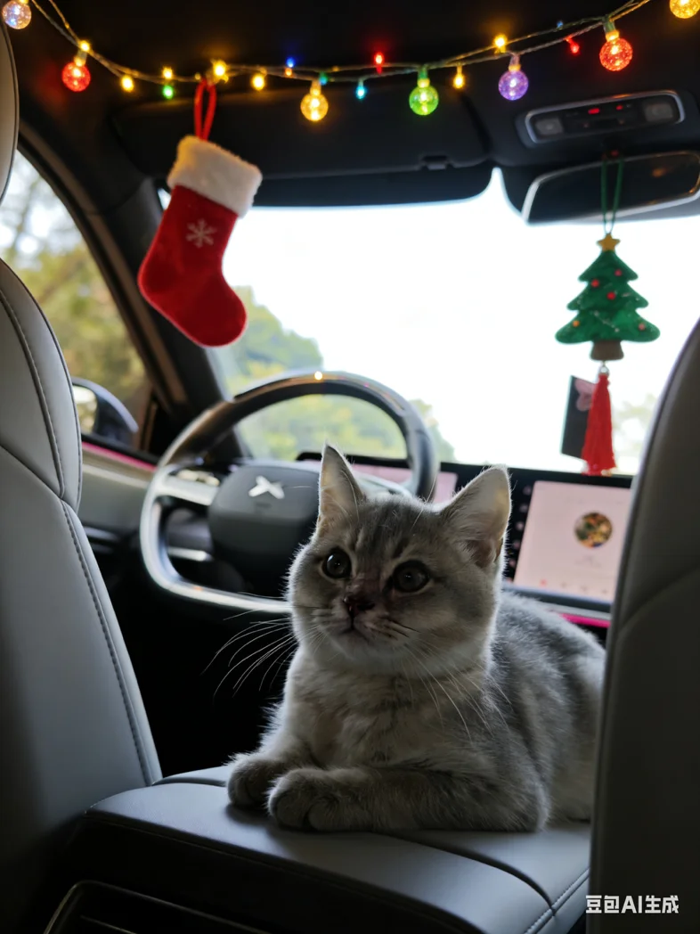 圣诞月的快乐是小鹏和猫主子给的!🎄给爱车内饰捣鼓了一圈圣诞装饰,🫎麋鹿挂坠晃悠在出风口,🧦毛绒圣诞袜塞了猫零食挂在扶手箱,车顶还粘了一圈小彩灯。结果这只银渐层直接蜷在圣诞主题的副驾垫上,把自己当成了我收到的最好圣诞礼物,那小模样软乎乎的,瞬间觉得折腾这么多装饰都值了,有车有猫的圣诞,暖乎乎的幸福感直接溢出来啦~#我的圣诞魔力座驾#