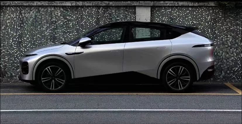 星际灰在不同光线下呈现出丰富的层次感,阳光下泛着微微的金属光泽,阴天又显得沉稳内敛。溜背式的轿跑造型非常吸睛,隐藏式门把手和贯穿式尾灯让整车看起来科技感十足。车身线条流畅,风阻系数低到惊人,据说只有0.248Cd,难怪续航这么顶!