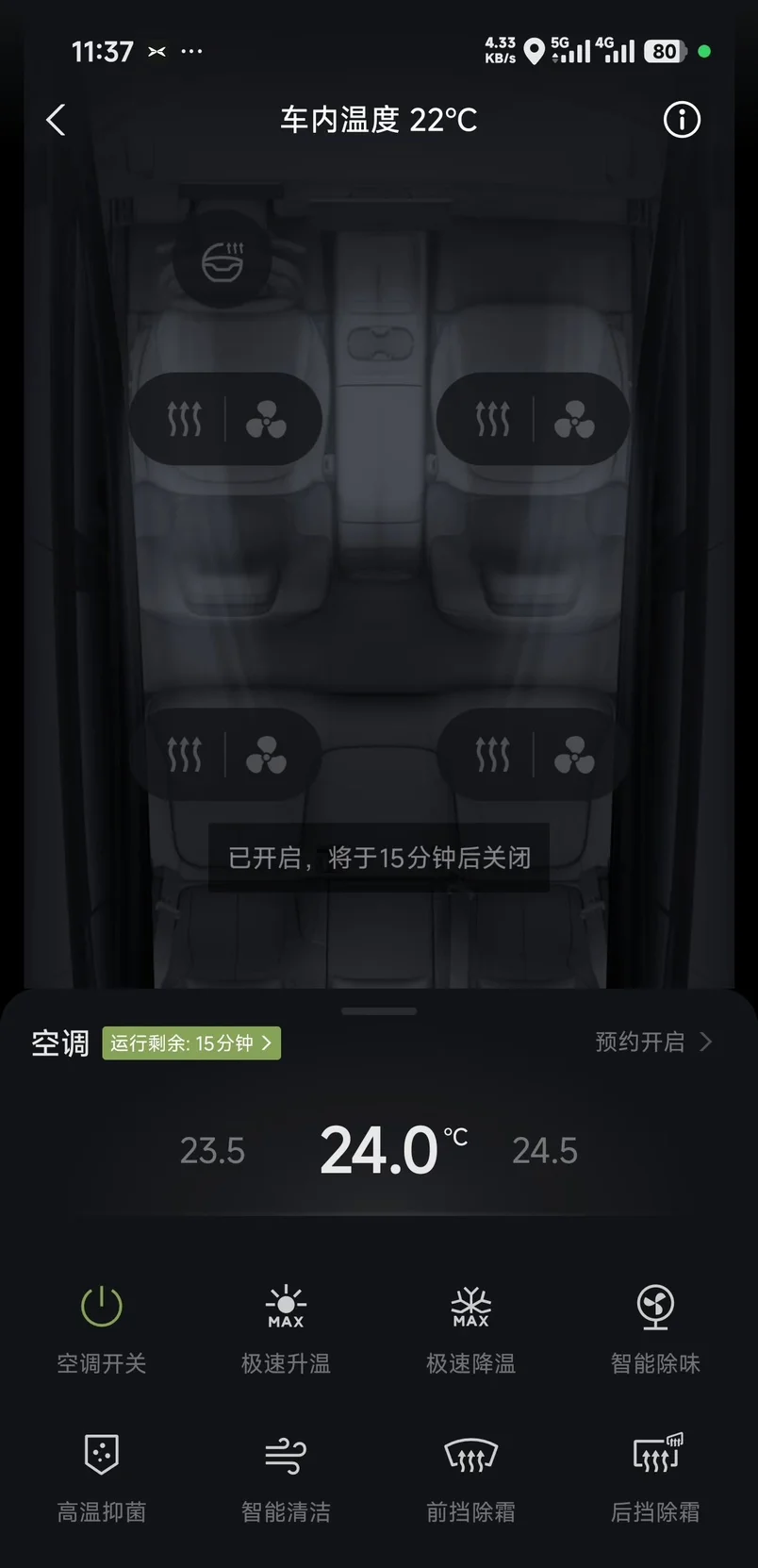 2. 开车时:空调设22-24℃就够,开内循环+脚部出风,比开高温大风省不少电。座椅加热开低档就行,高档位超费电。起雾直接喊“你好小P,开前挡风除雾”,比自己调快多了。用经济模式+高动能回收,别猛踩油门刹车,高速跑100-110km/h,续航更稳还安全。
