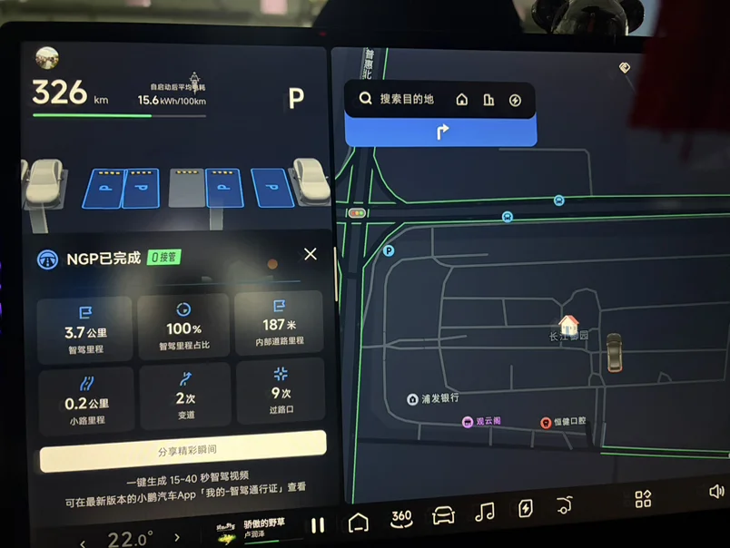 我的小P越来越厉害了,今天又是100%智驾,值得点赞,从进小区开始到自己的车位全程智驾,棒极了👍我的智能时刻#