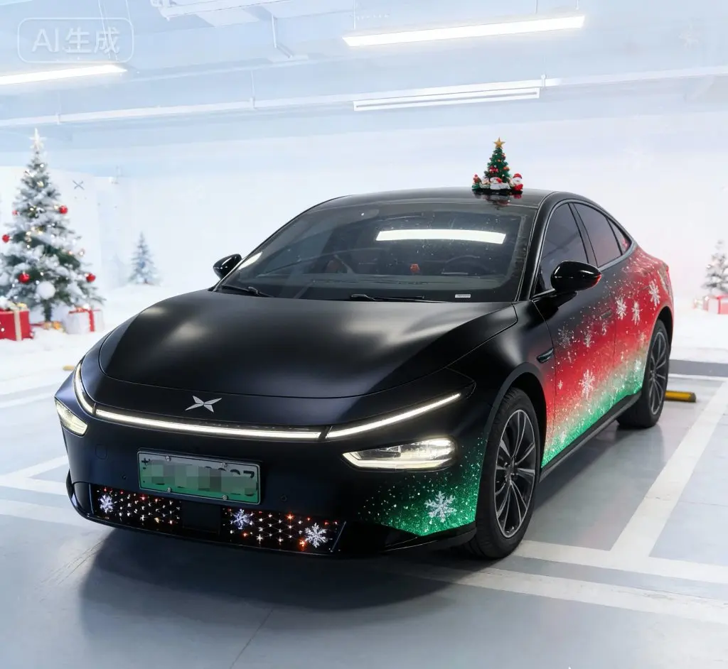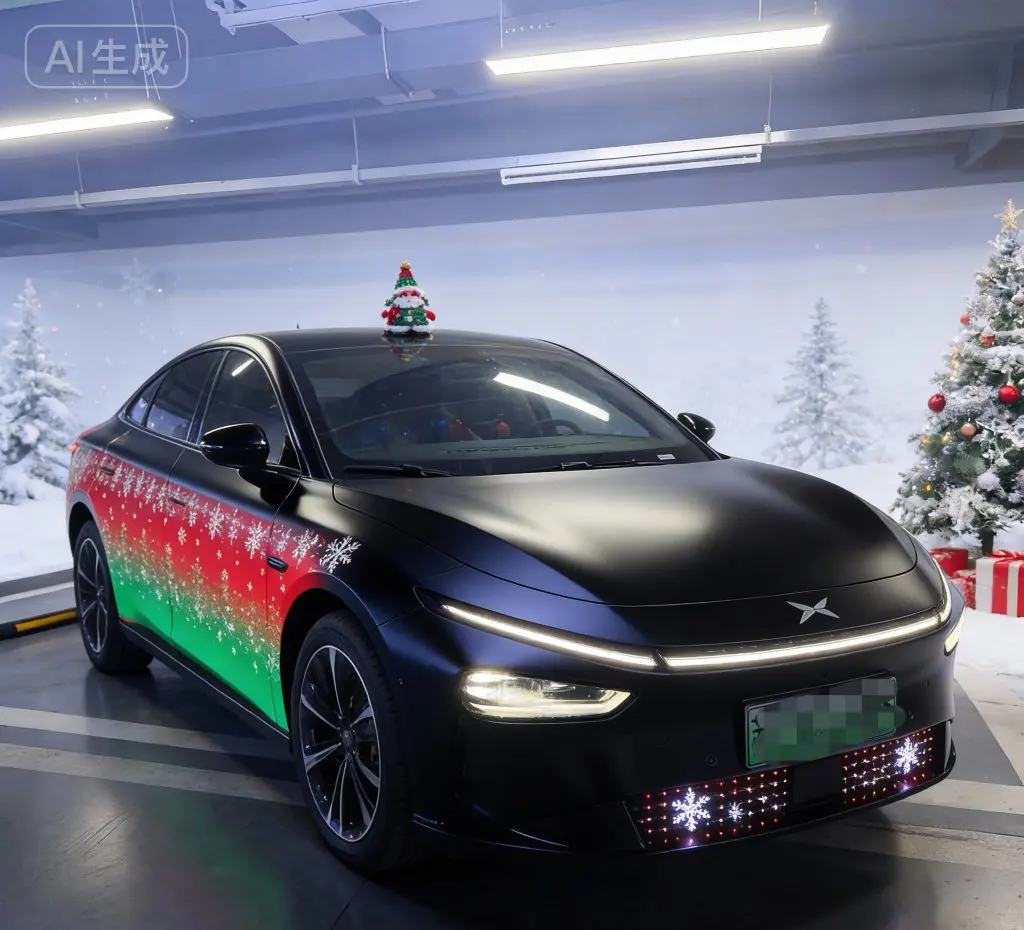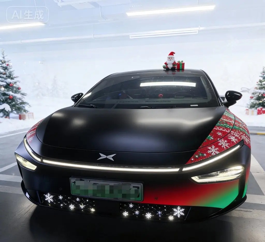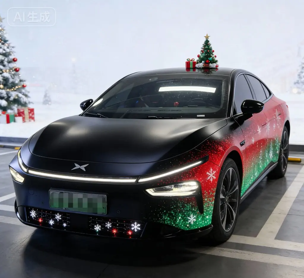 现在AI工具太强了,生成的车漆质感相当不错,圣诞装饰也很和谐,不知道是审美疲劳还是咋地,说感觉黑色比银色(原车颜色)确实酷😎,最后一张胖胖的,有点滑稽。