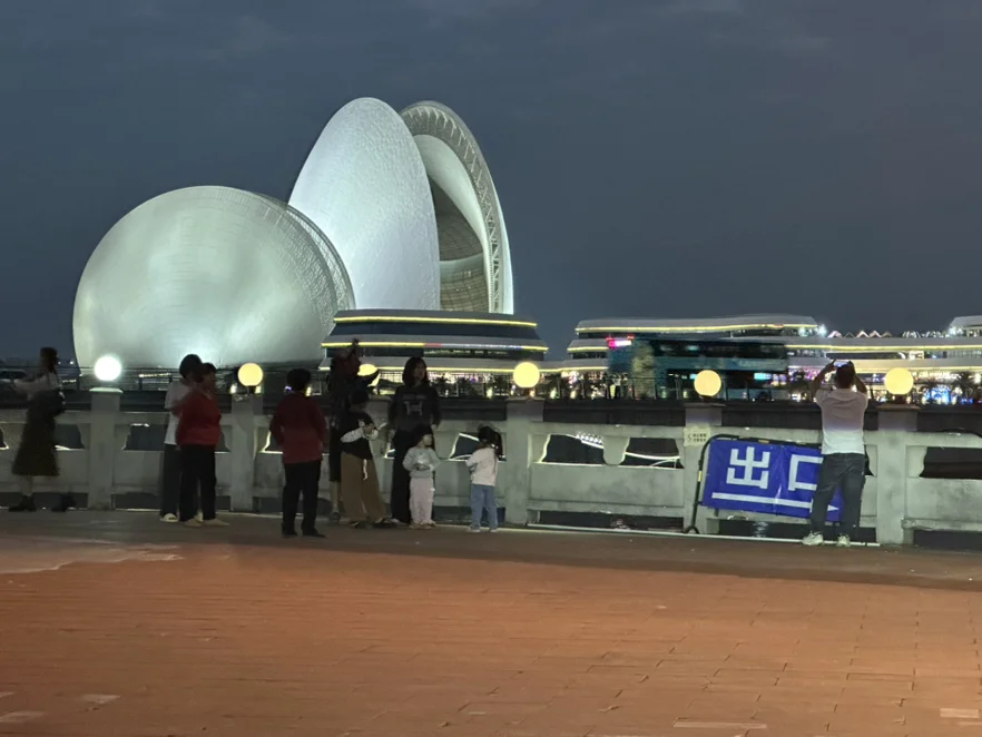 其设计独具匠心,大、小剧场宛如一大一小两组“贝壳”,白天半通透,似与大海深情对话;夜晚晶莹剔透,如月光洒落人间。