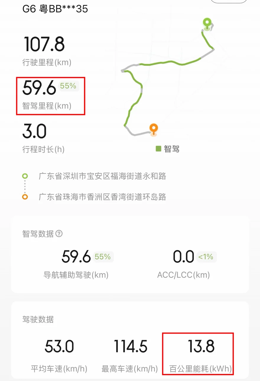 小鹏G6实测表现不错,这次出行精准跑完107.8公里,与导航里程完全吻合,行程精准度拉满。小鹏App同步记录数据,智驾模式行驶里程达59.6公里,占比高达55%,智能出行体验全程在线。更值得一提的是,本次行程百公里能耗仅13.8kWh,兼顾智能与高效的双重优势。无论是日常通勤还是远途出行,小鹏G6都能以精准的行程把控、稳定的智驾表现和出色的能耗控制。