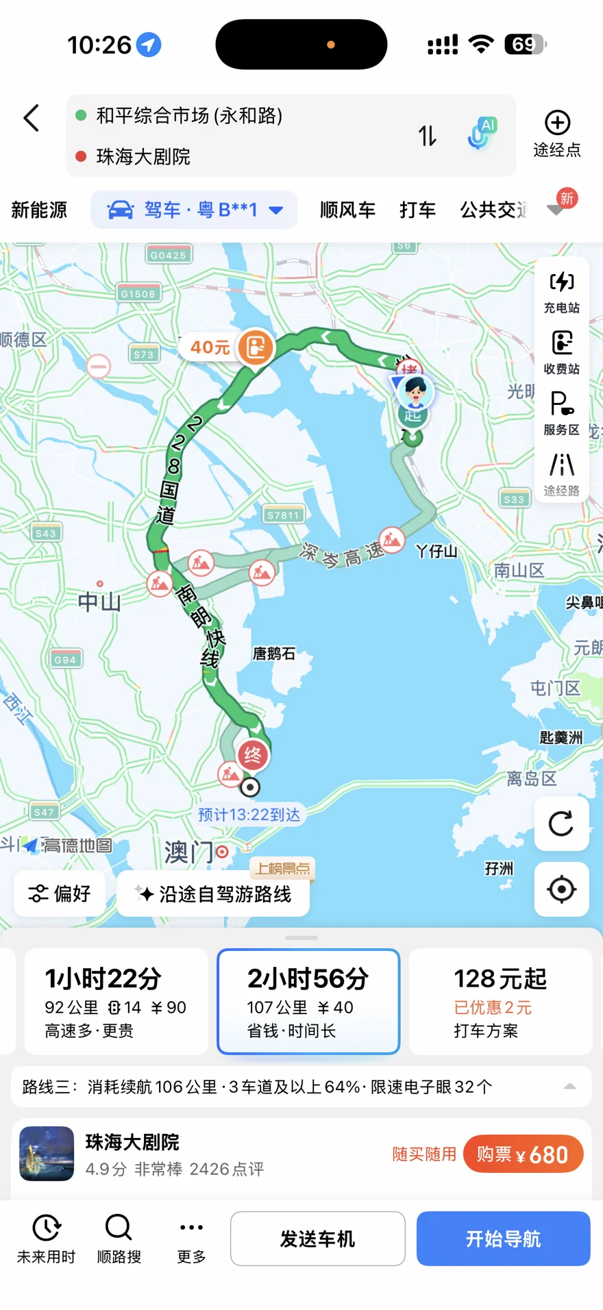 虽然有深中通道,但是我还是选择了走费用最少的一条路,高速费日仅便宜一半多,虽然绕过深中通道。但只需要40元,但是时间要多一倍。没关系,毕竟周末,慢慢开车不着急。重点在于过程,何况开的还是G6,总比传统燃油车驾驶体验好太多。