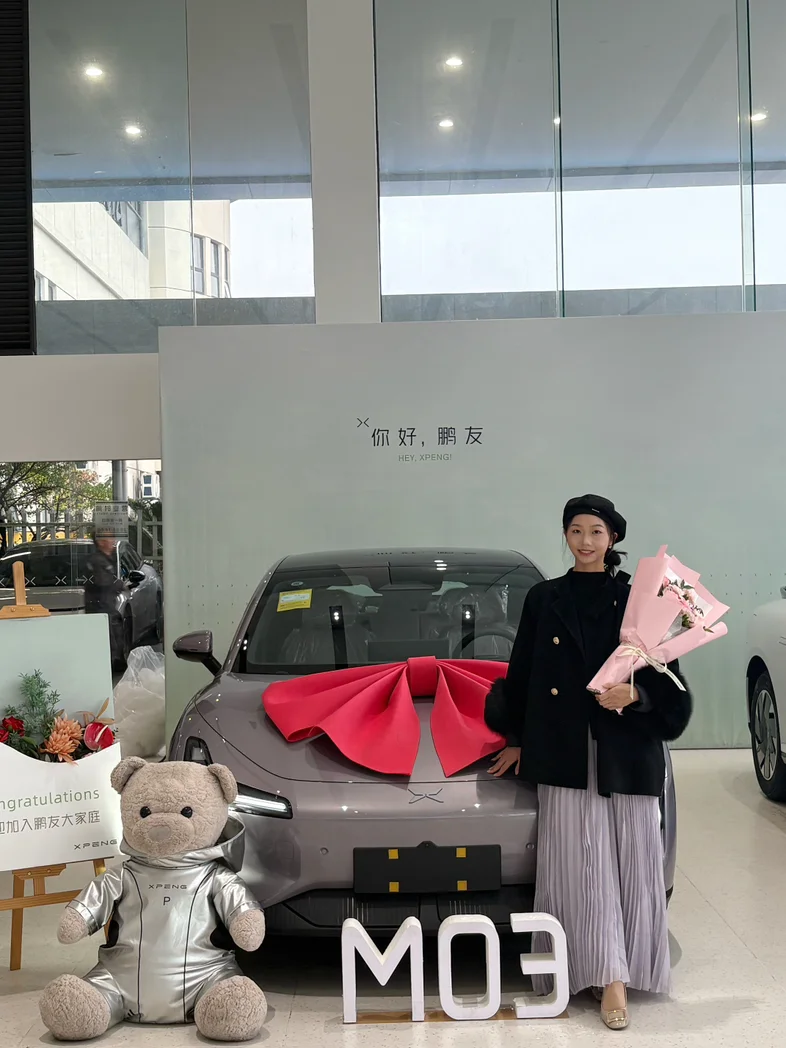 提车日记💜 被小鹏的服务狠狠戳中今天穿紫色小裙子去提我的小鹏M03啦,车身紫和裙子的适配度直接拉满,合照拍到停不下来!最想夸的还是店里的神仙服务!销售小哥超有耐心,不管是配置参数、续航细节还是后期保养问题,都讲得明明白白,全程真诚又专业,本来的小纠结全被打消~提车当天中午到店的时候,店里还贴心准备了餐食,味道居然超赞!提车的幸福感直接翻倍✨从此和我的紫骑士开启快乐出行啦🚗#小鹏M03 #提车vlog #紫色控的最爱 #新能源汽车 #神仙4S店