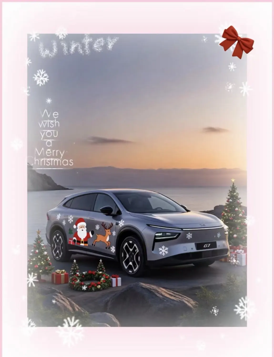 圣诞魔力,全在座驾!小鹏G6,冰雪路况稳如驯鹿,超快充能快过礼物派送。车内温暖如壁炉,智能座舱秒懂你心愿。这个圣诞,让科技点亮旅程,驭见冬日奇迹!