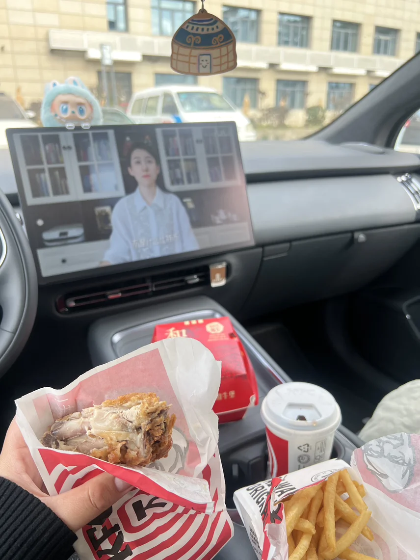 #冬至的最佳打开方式# 冬至不吃饺,炸鸡也挺好!冬至大如年,暖在小鹏里~躲进我的小鹏P7+,把冬日寒气一键隔绝🍟吮指原味鸡啃起来,热饮暖到心坎里。小鹏相伴,热食暖胃,或许这就是打工人最舒服的冬至打开法吧!😏
