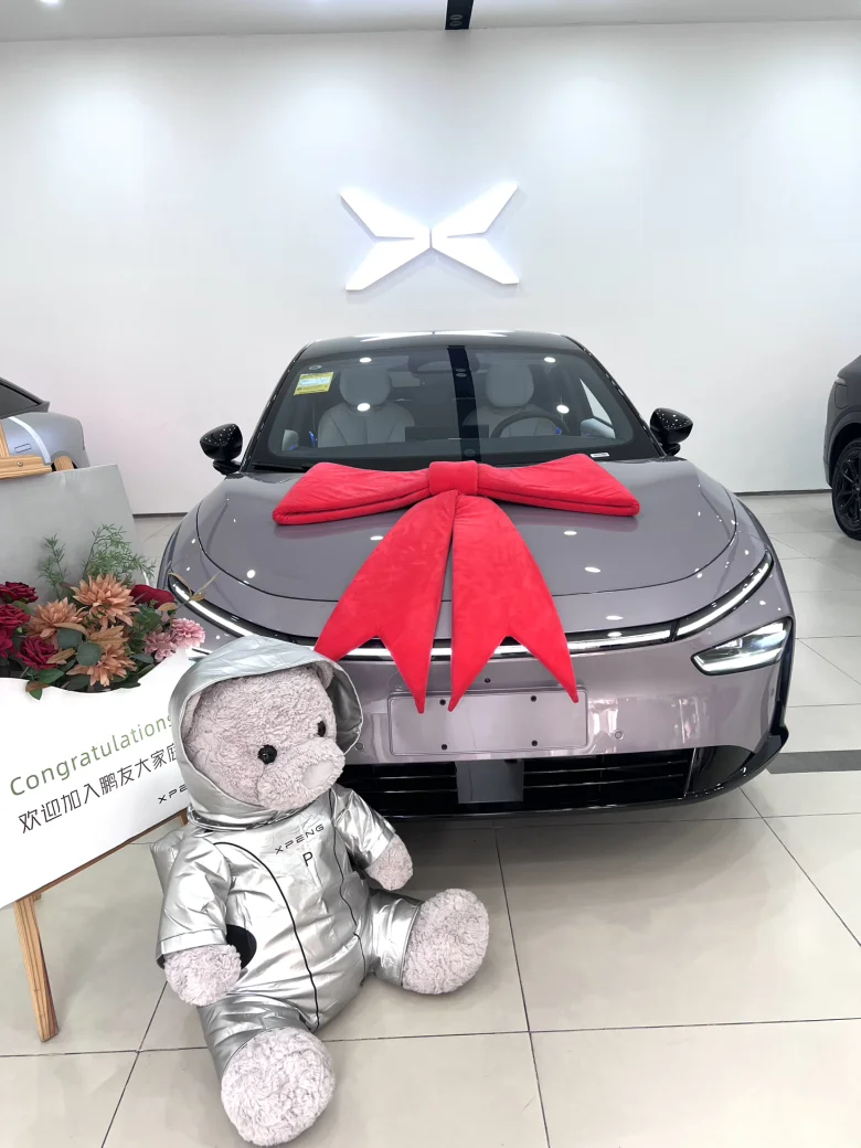 今天,我终于把心心念念的星暮紫小鹏P7+开回了家。从在社区论坛上看到鹏友们的分享,到如今亲自握住方向盘,这份期待终于落地为实。一眼心动,再见倾心决定买电车后,我试驾了好几款。直到在展厅看到P7+的星暮紫,瞬间被击中了。这抹紫色并非俗艳,而是以暮光为灵感调制的,在阳光下泛着温柔的银河蓝光泽,阴天时则显得深邃沉静,高级感拉满。超过5米的车长搭配溜背造型,像一只蓄势待发的猎豹,风阻系数低至0.198Cd。交付中心特意为它系上了大红蝴蝶结,停在花墙前,仪式感直接拉满。