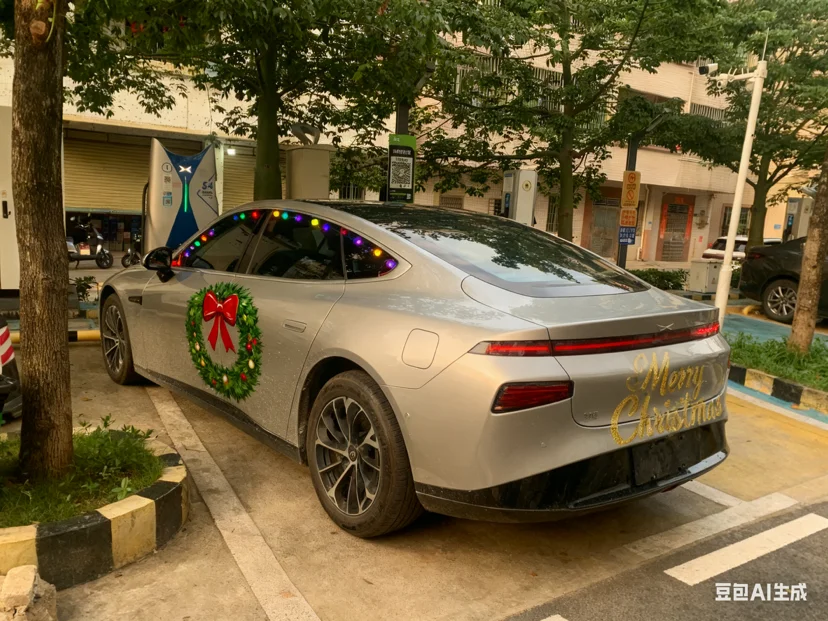 #我的圣诞魔力座驾# 给我的小鹏P7安排上圣诞氛围,车内车外都裹满节日感啦~从座舱到后备箱,氛围感直接拉满🎄添点圣诞小装饰,冬日出行的仪式感必须满了!车身画了圣诞涂鸦,副驾、后备箱也都摆上圣诞装饰,搭配着座椅加热和空调速热,圣诞出行的幸福感直接拉满🎄这不就来了~