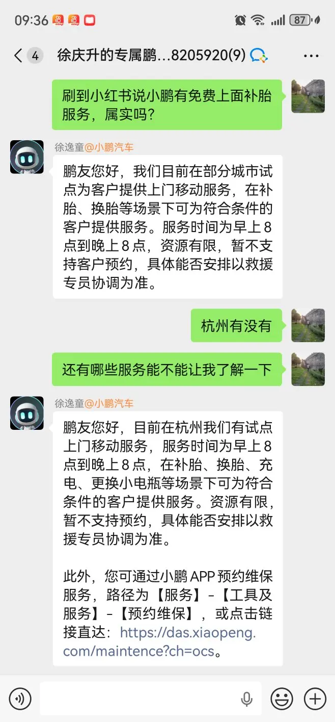 无意间刷到了小鹏有免费补胎服务,一问还有不少项目,确实是品牌的隐形财富,必须点赞,希望更多的鹏友知道