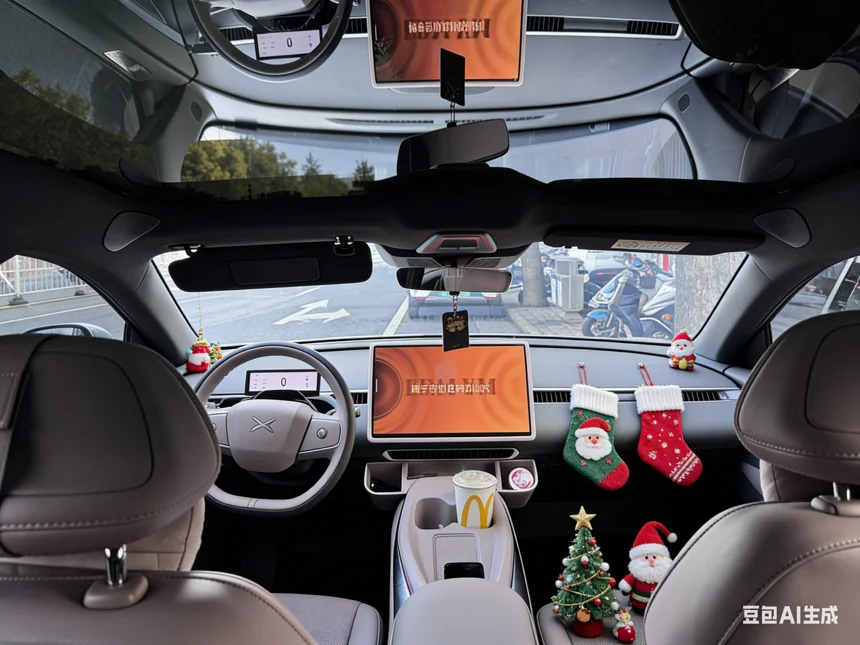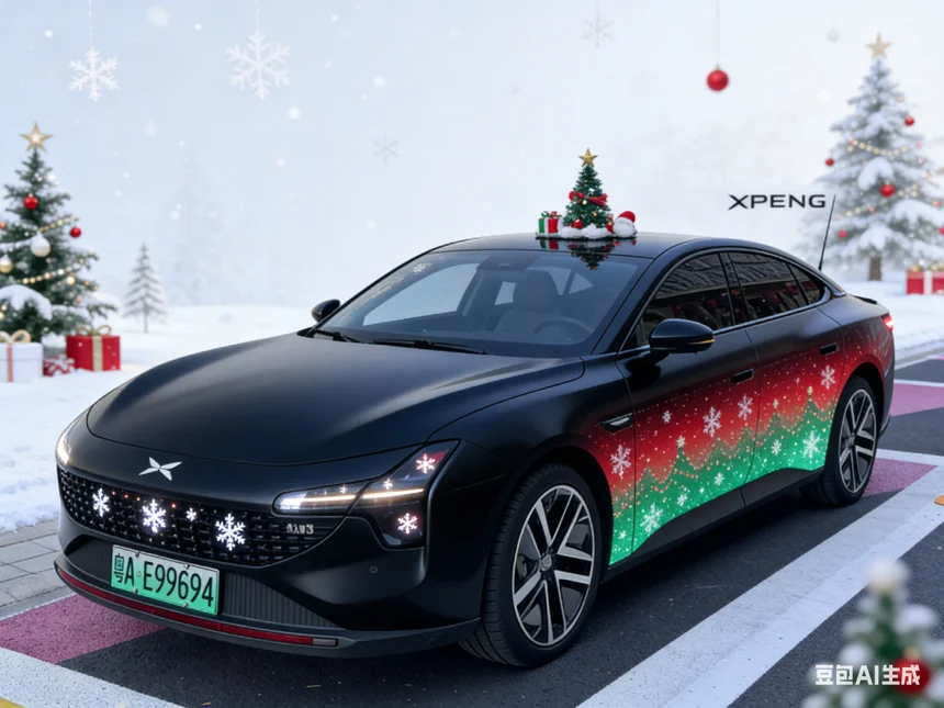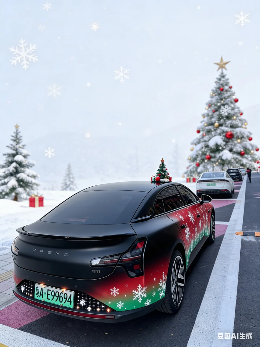 #我的圣诞魔力座驾# 我的圣诞魔力座驾给我的小鹏M03换上圣诞新装啦!哑光黑的车身打底,搭配红绿色渐变的圣诞雪花花纹,瞬间让爱车充满节日氛围感。前脸格栅的迷你雪花灯效一闪一闪,车顶的小圣诞树装饰更是点睛之笔,走在路上回头率直接拉满~车内也没落下圣诞布置,中控旁挂了红绿配色的圣诞袜,扶手箱摆上迷你圣诞树和圣诞老人玩偶,每次坐进车里都能感受到浓浓的圣诞气息。开着装扮好的小鹏M03,仿佛把圣诞童话搬进了日常出行,这份专属的圣诞浪漫,是小鹏M03带给我的小美好呀~