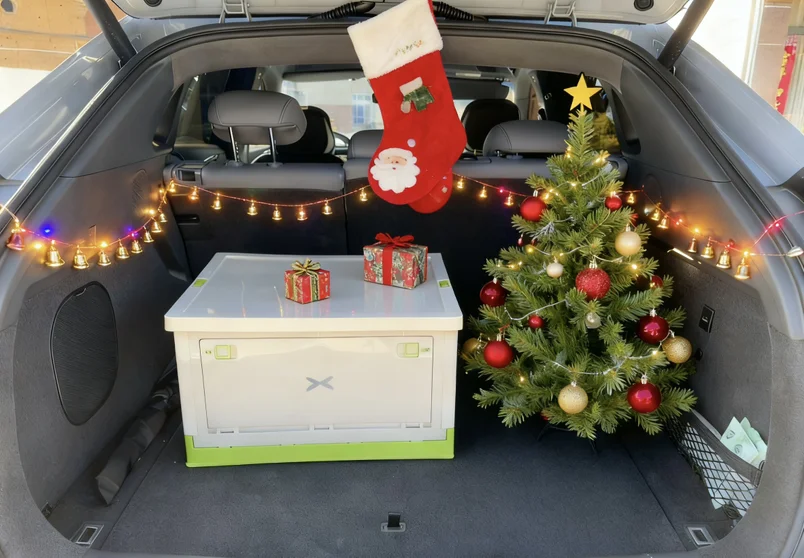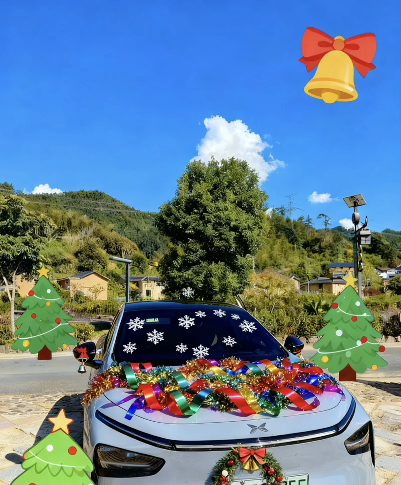 #我的圣诞魔力座驾# 圣诞氛围拉满!给我的小鹏G7穿上圣诞“新衣”,车身挂了闪闪的圣诞铃铛,后备箱摆上迷你圣诞树,连轮毂都系了小雪花挂饰~🎄 圣诞季开着我的魔力座驾出门,走到哪都是氛围感担当~#我的圣诞魔力座驾 #小鹏G7 #圣诞爱车装扮