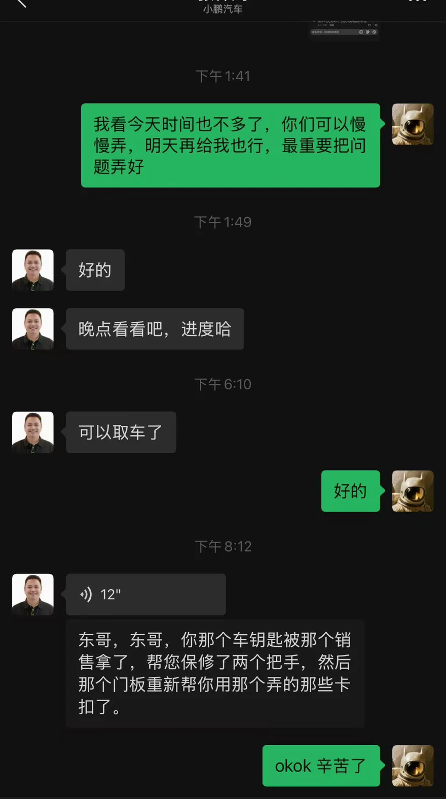 交车时车辆已清洗得一尘不染,顾问还细致叮嘱日常养护技巧。从预约到完工,小鹏售后的高效、专业与贴心,彻底打消了我的顾虑,让我真切感受到被重视的温暖,这样的服务真的让人放心又安心!