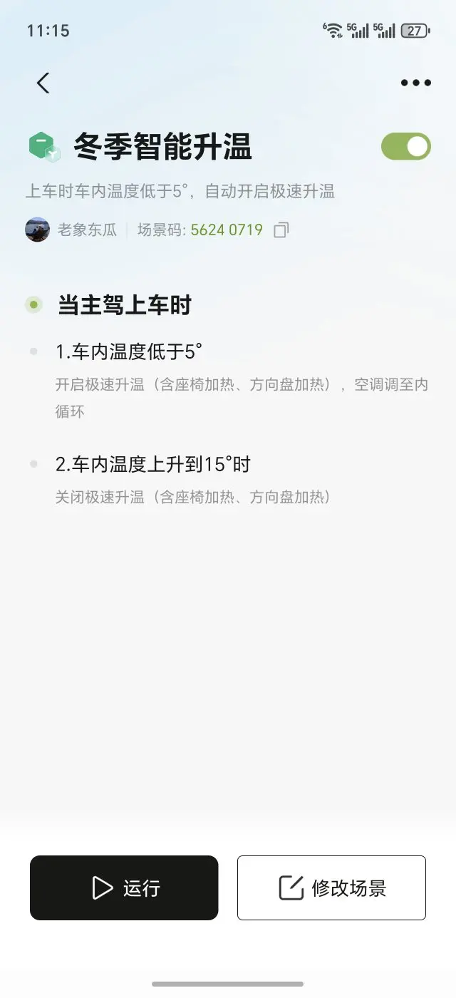 北方的冬天早上温度都是零下,好在小鹏有很多解决的办法,比如极速升温,快速让车里温度上升,再比如更智能化的智慧场景,每天早上出门前自动打开空调和座椅加热,这样上车就可以暖暖的