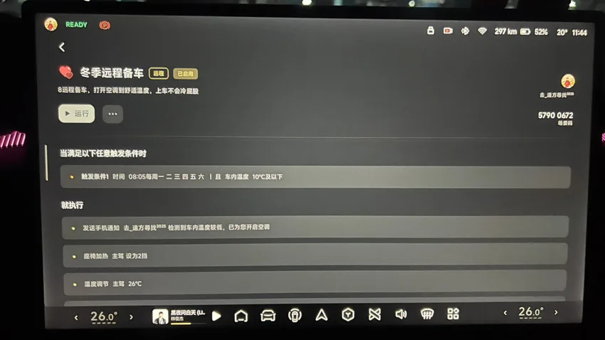 #冬至的最佳打开方式# 一到南方的冬天,那种湿冷得感觉真的难以形容,一出门就冻手冻脚。但自从有了这智能座驾,运用智慧场景功能远程加热,更是一绝,手机一键启动,上车时座椅早烘得暖洋洋,后背像贴着热毛巾,堵车都不烦躁了。出门前几分钟就可以提前开启远程控温功能,每次上车都像钻进移动小暖炉,再也不担心车内像冰窖!方向盘加热功能也非常的贴心,握着温乎乎的方向盘,冻僵的爪爪瞬间回暖。以前冬天开车冷得哆嗦,现在科技把寒意全赶跑,这智能温度,真是冬日里最踏实的幸福感!