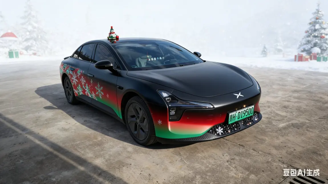 #我的圣诞魔力座驾# 想不到,真的想不到,小鹏MONA圣诞涂装居然可以这么好看的吗当哑光黑车身成为节日画布,红绿圣诞花纹自侧裙向上蔓延,如同流光溢彩的礼物丝带——小鹏MONA03圣诞限定涂装,用科技美学重新定义节日仪式感。前脸格栅间镶嵌的迷你雪花灯如星河闪烁,车顶小巧的圣诞装饰在浅金色背景中轻盈跃动。每一道车身折线都被写实质感强化,哑光涂层与渐变花纹在光影间低语,仿佛雪夜中驰骋的幻影。这不仅是涂装,更是移动的圣诞童话。MONA03以极具未来感的线条,承载传统节日的温度,让每一次出行都成为点亮街头的风景。科技与浪漫,原来可以如此同频共振。