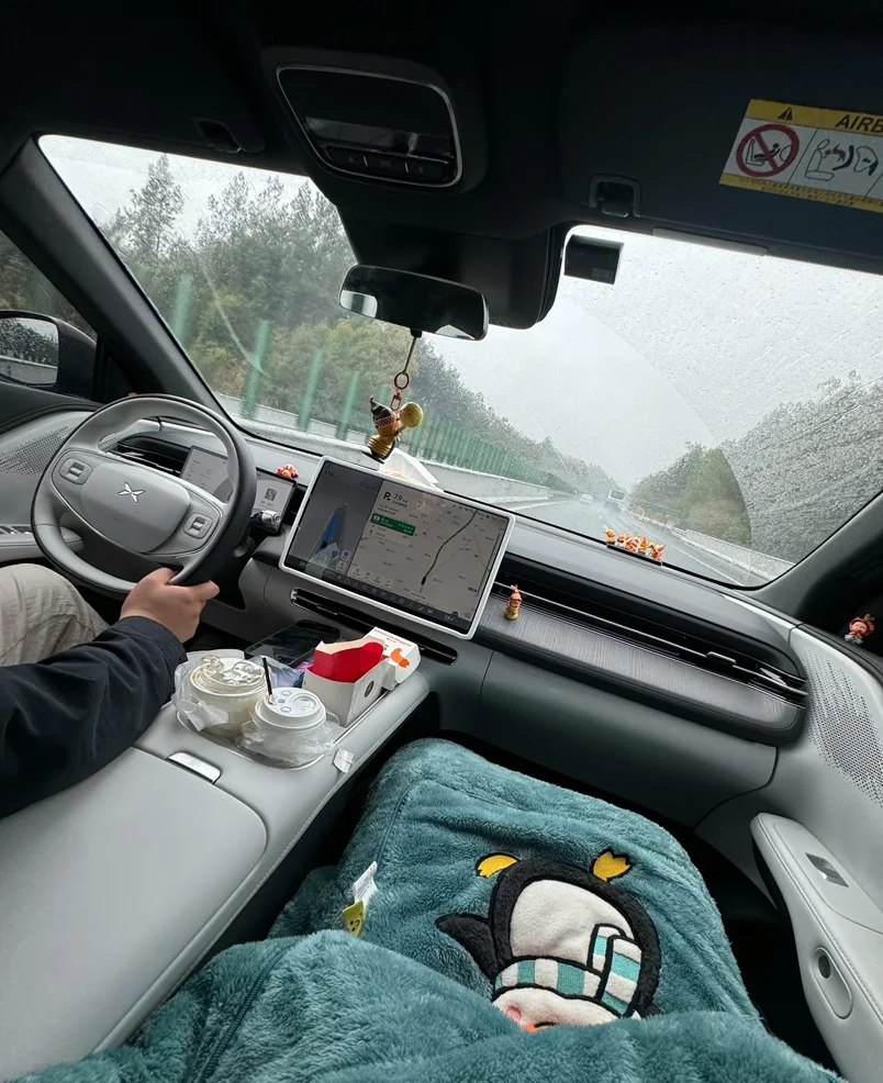 在车上放上小毛毯,长途路程还可以直接躺平开着座椅加热睡觉,车上办公也是杠杠得舒服😌