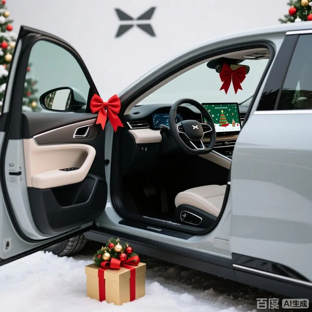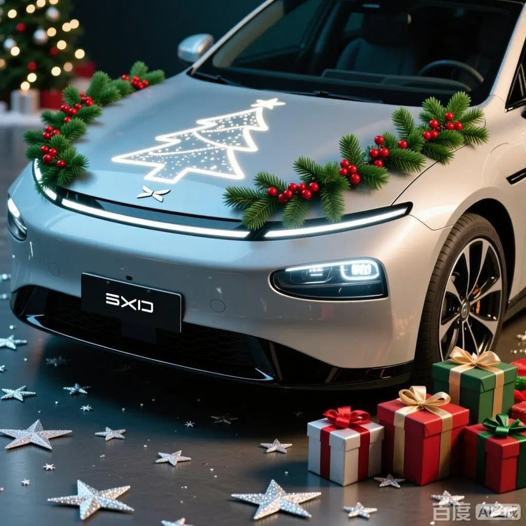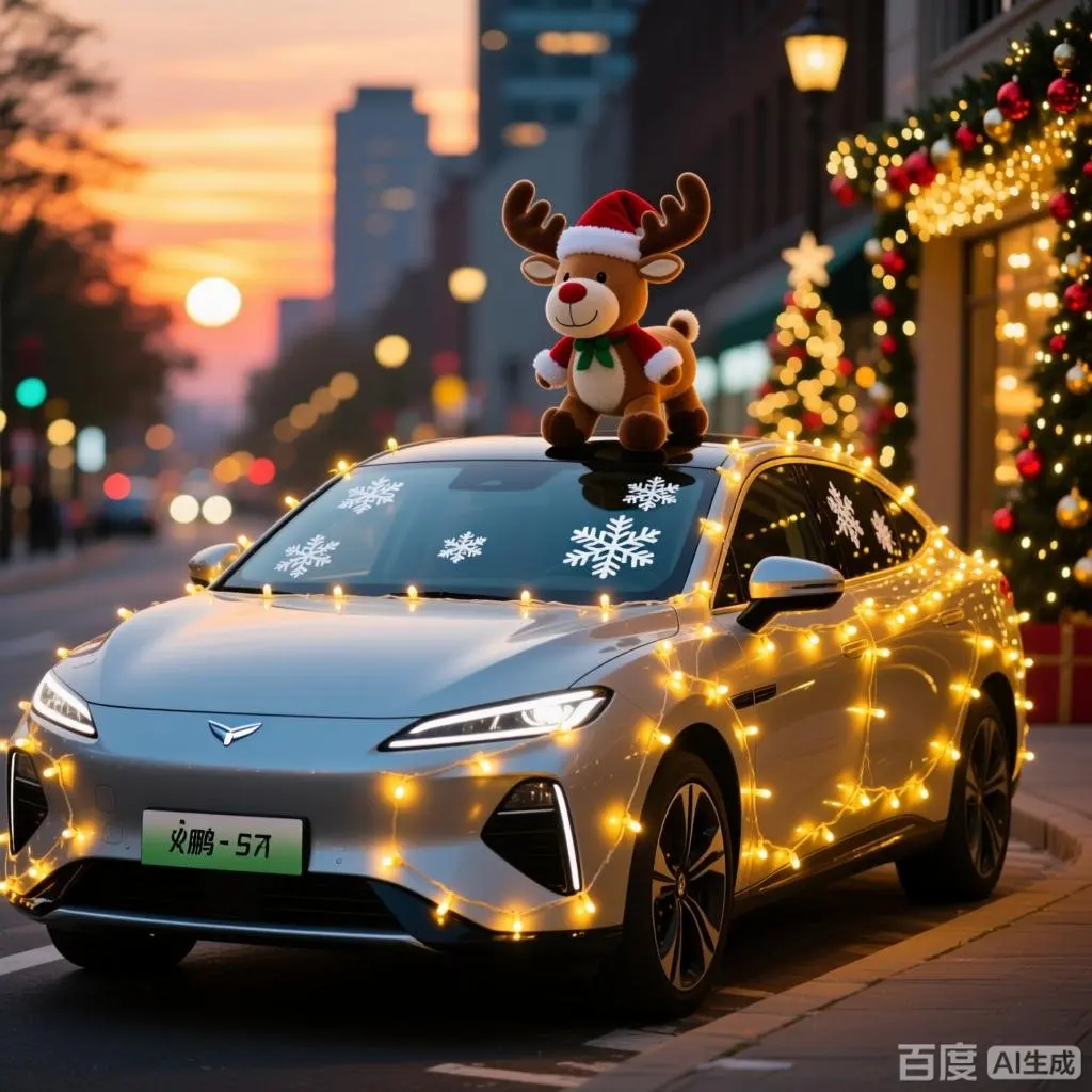#我的圣诞魔力座驾#我的圣诞魔力座驾:利用Ai工具也可以对小鹏爱车进行圣诞涂装啦,第一次试水,虽然没有一步到位,但是通过几次努力后最终的作品还是可圈可点的,希望各位大小鹏友可以点赞鼓励,支持一下吧,哈哈……