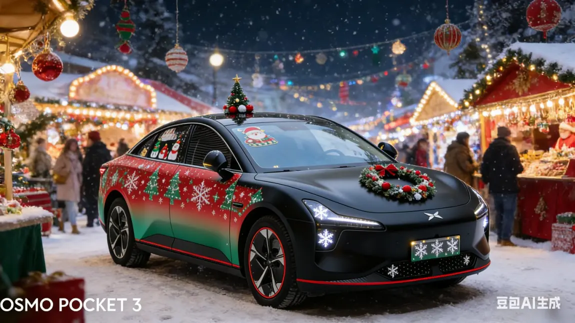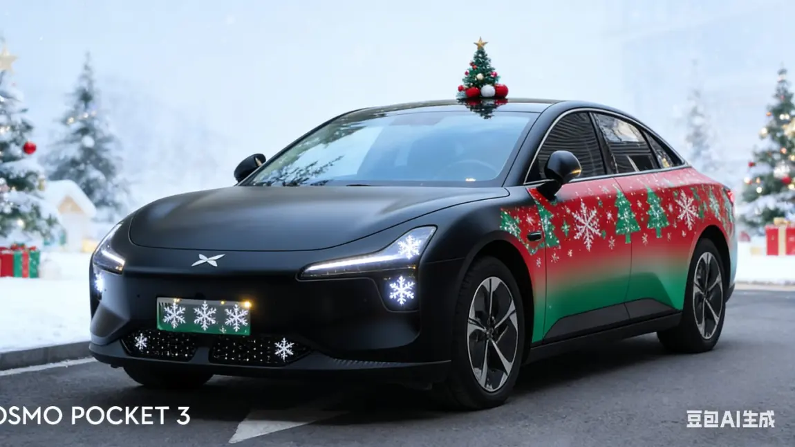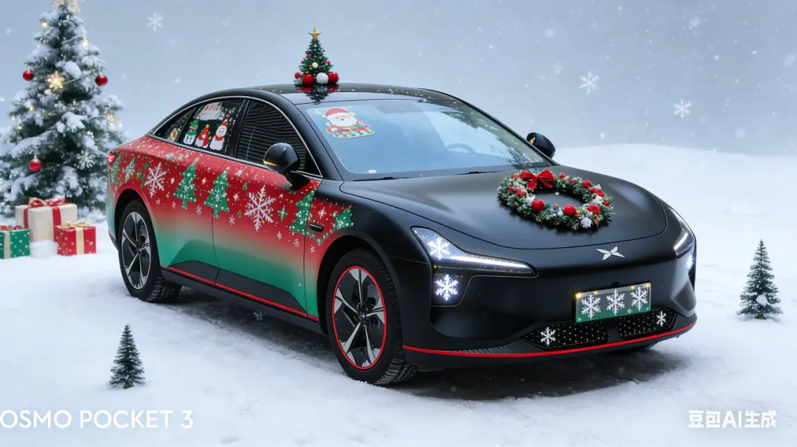 1圣诞氛围直接拉满!我的小鹏换上哑光黑圣诞战衣,车身红绿色圣诞花纹渐变超吸睛,前脸格栅的迷你雪花灯效闪到心坎,车顶的小圣诞装饰更是萌趣,开着它过圣诞也太有仪式感了吧🎄