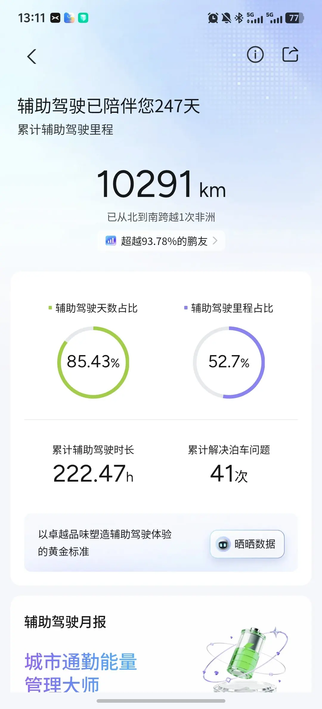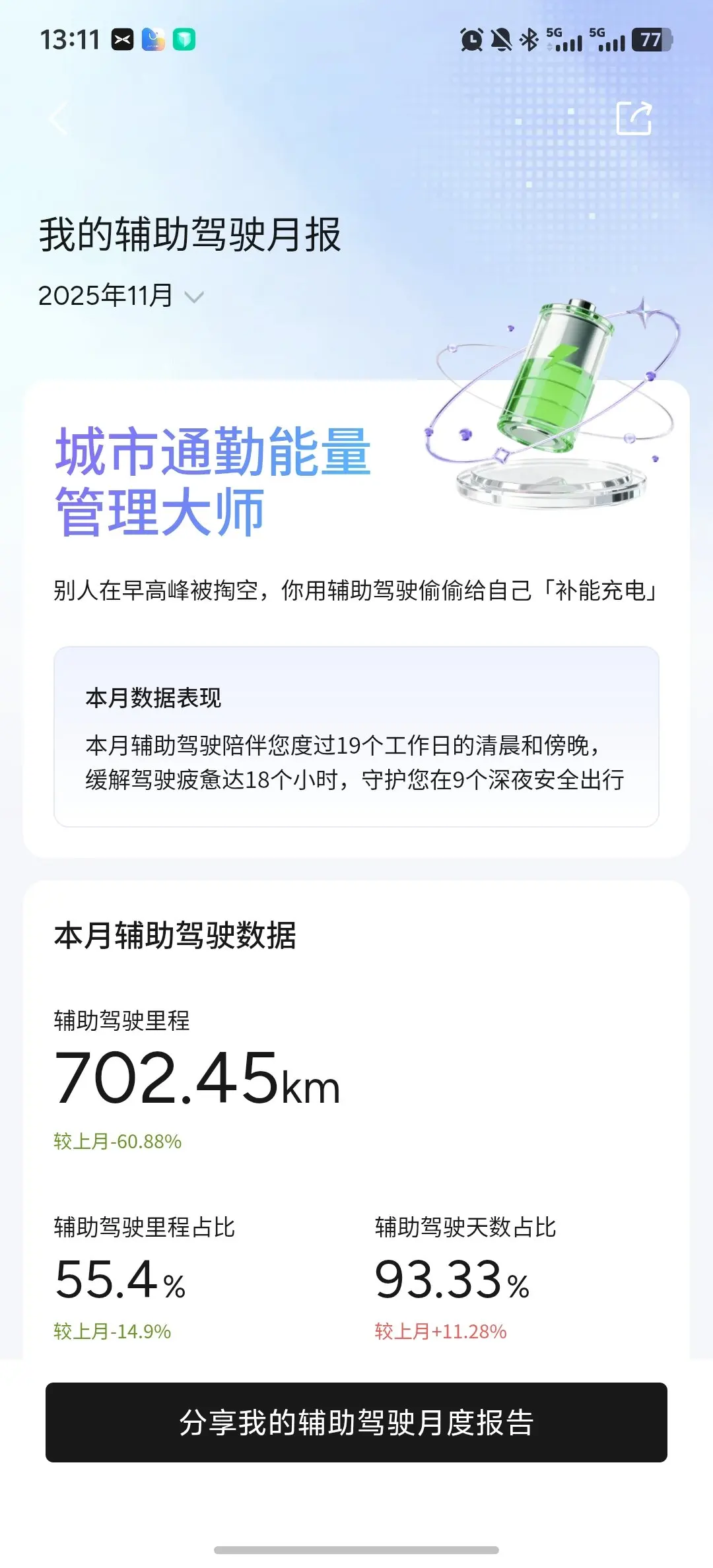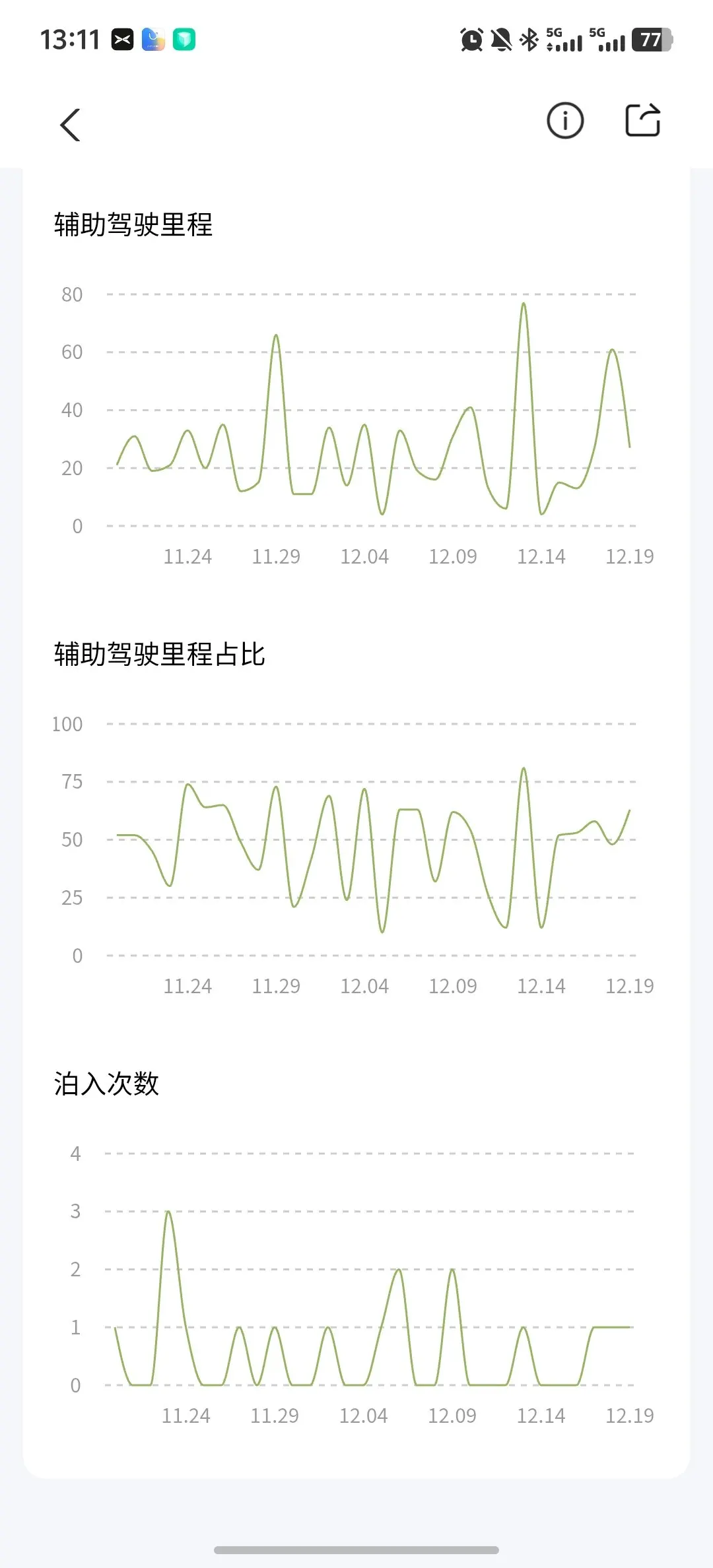 #11月用车总结# @鹏友俱乐部小向导 十一月份,我竟用智驾行驶了700公里。这个月我大多在北京市区活动,偶尔去去近郊。大雪天气里,我打卡了故宫、长城、天坛、颐和园和环球影城。冬天自驾,感觉更费电,但北京充电还是很方便,里程焦虑减轻了不少。不过,冬天太费电,充电相比夏天还是慢一些。我去了小鹏新开的奥林匹克公园地下充电站,体验很棒,大大缓解了我的充电恐惧焦虑。此外,不少商场地下也设有充电站,我可以在逛商场时给车充电,还能减免停车费,实在太贴心啦。