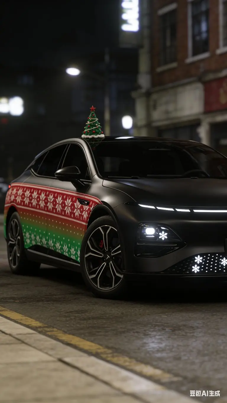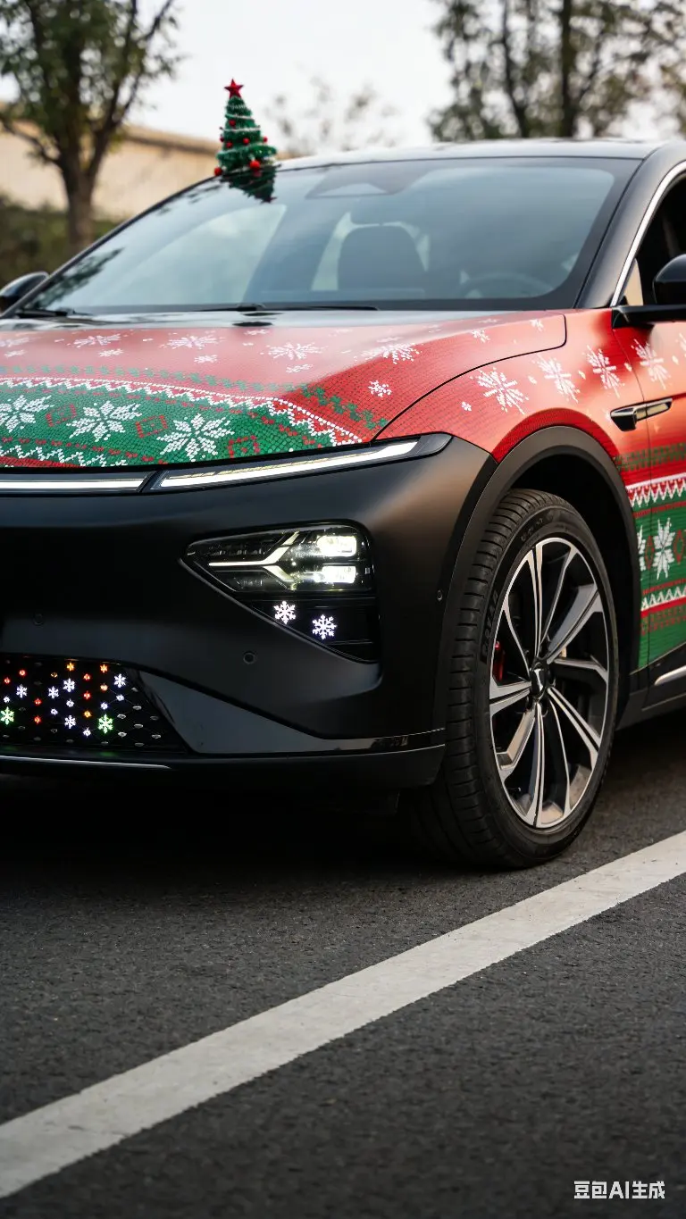 #我的圣诞魔力座驾# 圣诞的快乐,让爱车承包全部仪式感!给车窗贴圣诞贴纸、后视镜挂小铃铛,轻改造就有满满节日氛围;穿上红绿色圣诞战袍,和爱车拍人车CP OOTD超出片;在后备箱拆圣诞礼物,惊喜感拉满;还用小鹏AI涂装给爱车设计了红绿色渐变圣诞皮肤,哑光黑车身配雪花灯效超吸睛,这就是我的圣诞魔力座驾~