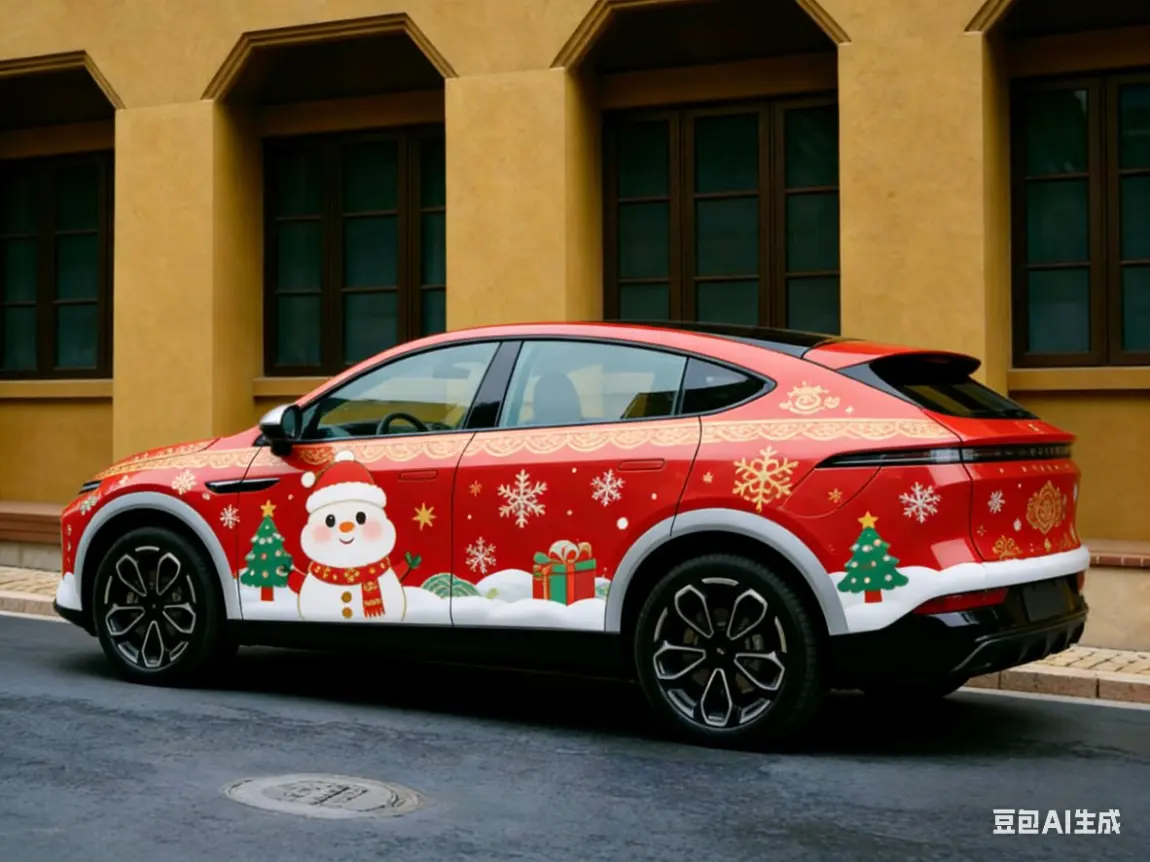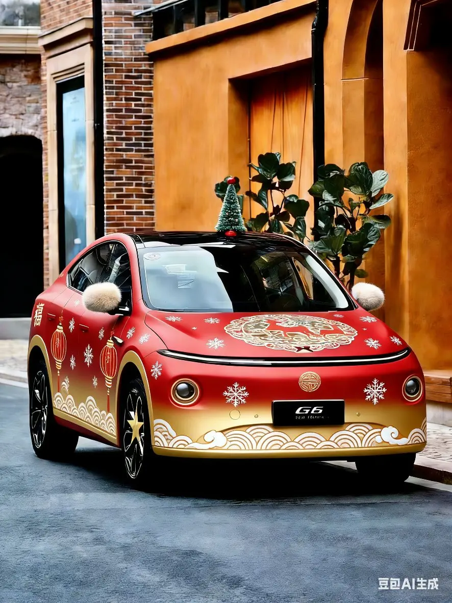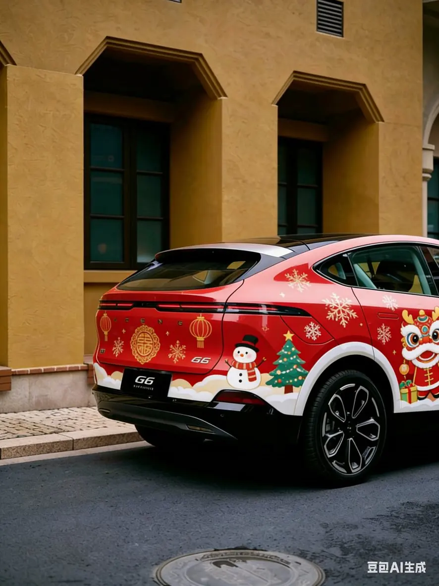 用豆包生成了几张g6特写,圣诞和春节都一个性质,都是跟冬季的雪、喜庆团聚这些元素有关,小鹏g6新中式圣诞涂装。