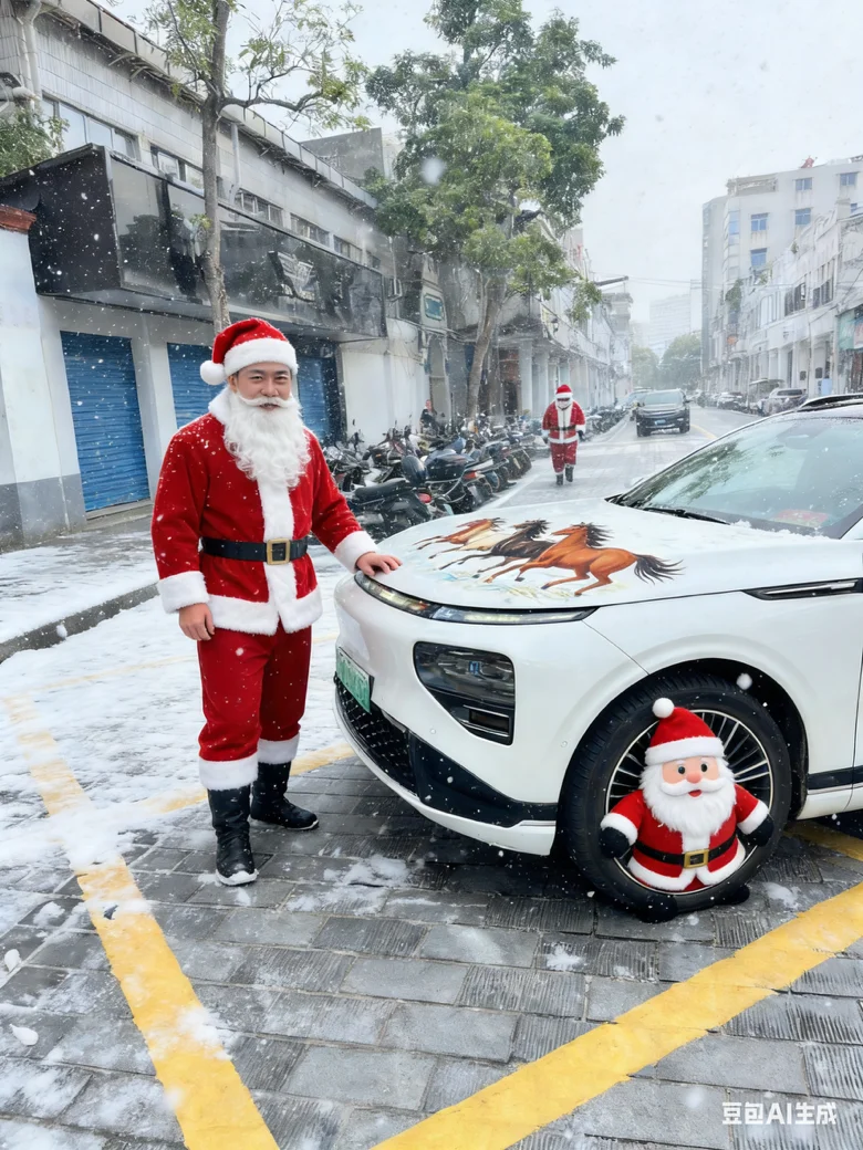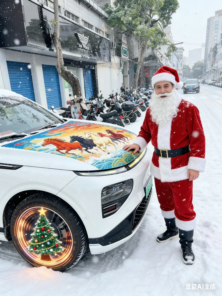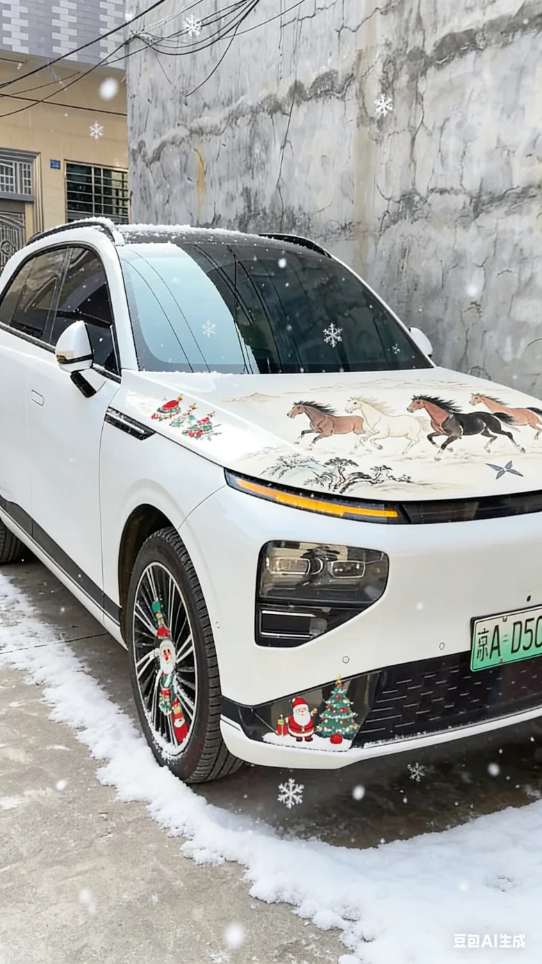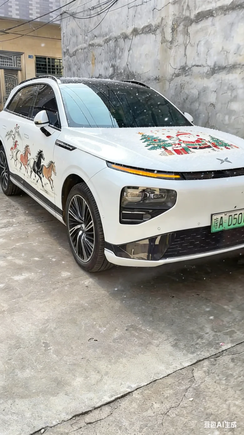 #我的圣诞魔力座驾# 当雪花簌簌落满小鹏G9的车身,当齐白石笔下的骏马踏雪奔腾在引擎盖之上,当圣诞老人告别驯鹿、换乘智能座驾穿梭街巷,双节的魔法就此降临!车轮裹着圣诞的欢歌,车身漾着国风的雅致,雨雪氤氲的天幕下,小鹏G9化身移动的节日盛宴。用花环彩灯缠绕车身,让小P换上圣诞红帽与元旦福字皮肤;在车内摆上迷你圣诞树,让新年挂饰随智能座舱的律动摇曳。@鹏友俱乐部小向导 @小鹏友 @鹏友大管家 @APP小助手 @小鹏资讯 @社区活动小姐姐