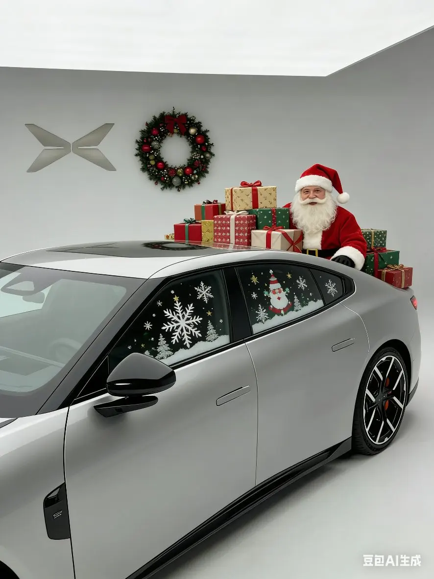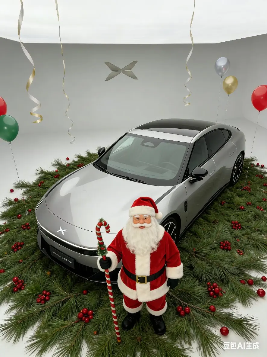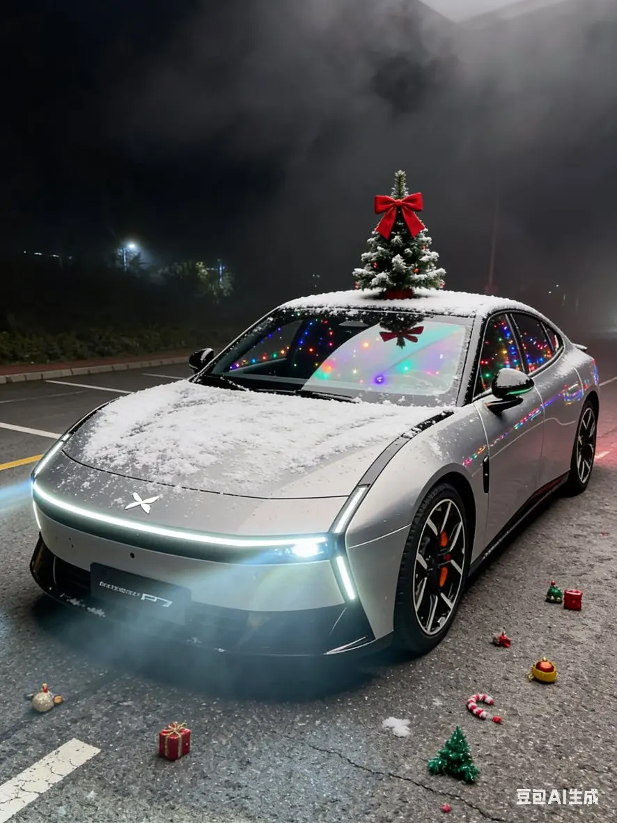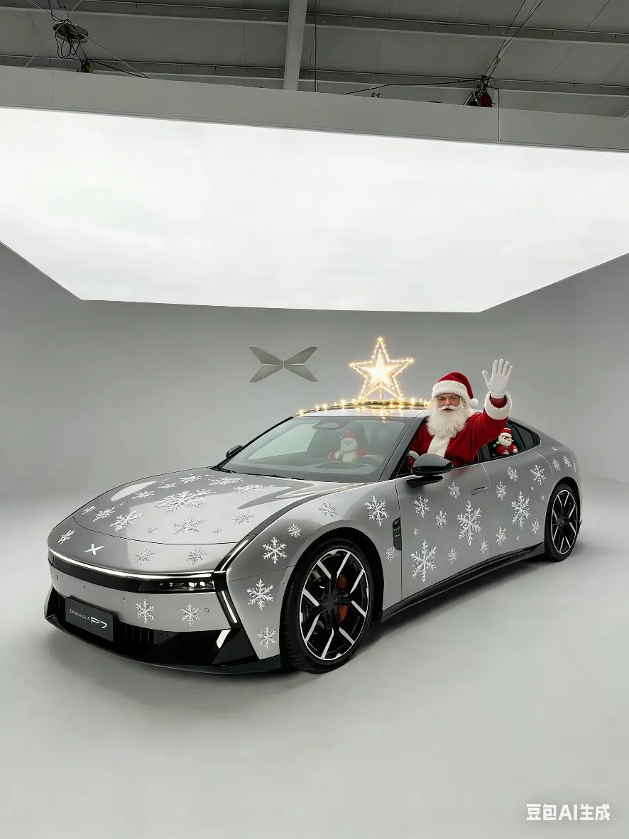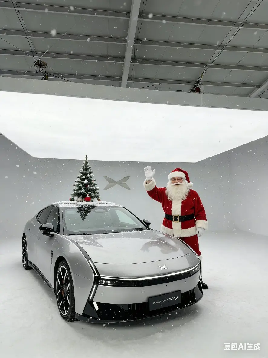 不得不说小鹏P7的颜值真的超能打,不管是哪种节日画风,都能稳稳hold住,科技感的设计反而让节日氛围多了几分独特的高级感。看着这些AI生成的画面,已经开始期待开着真车去解锁现实里的双旦惊喜了~