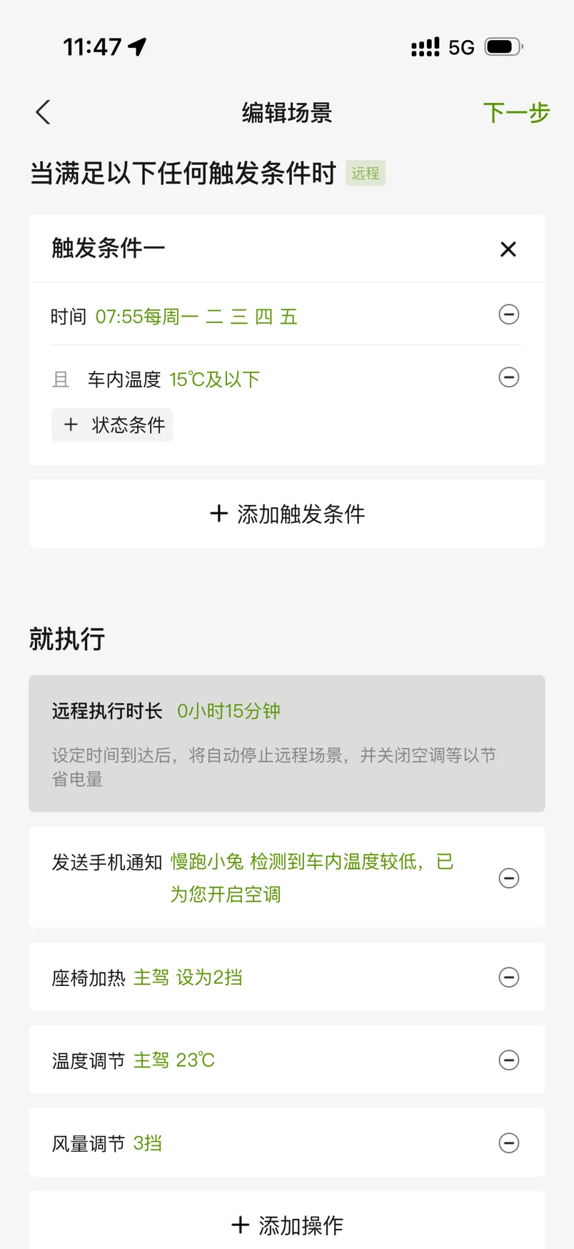 冬天智能场景太好用了,早上出门前提前热车,即暖和、又能提高电池续航。亲测好用!