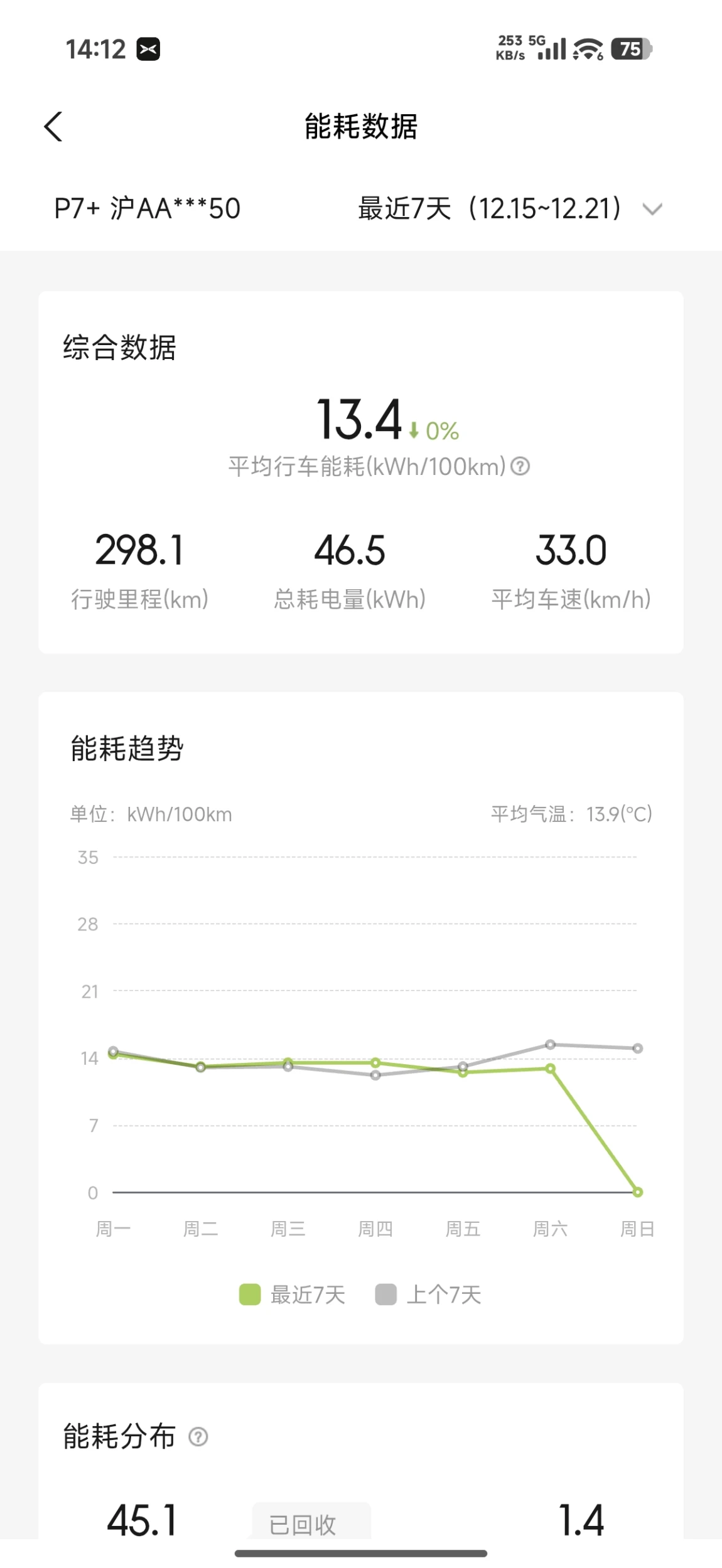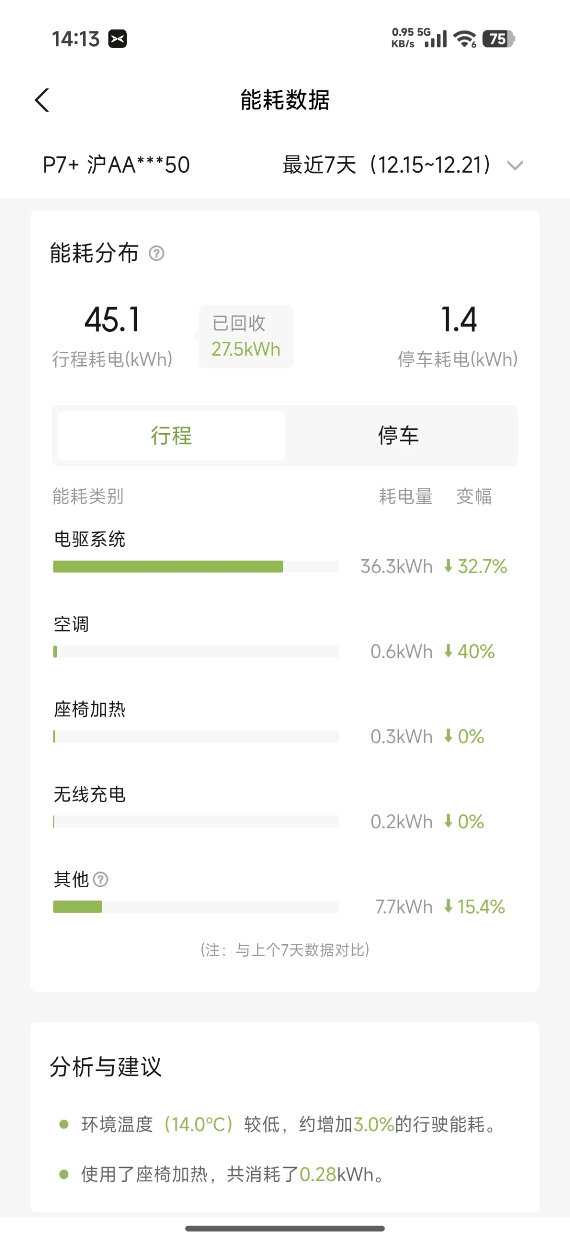 每周能耗打卡,上周气温又回升了一点,能耗又漂亮了一点= = 话说就现在这温度,有了座椅加热和方向盘加热后,要不是前档起雾我觉得空调还真可以不用开,这两真是神器啊