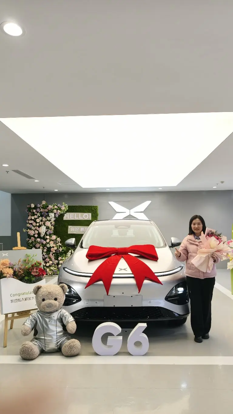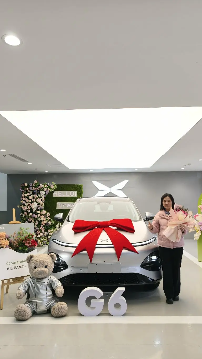 纠结半年的选车之路,终以小鹏G6画上句点。提车那天,父母陪我一起来到交付中心,红色地毯上,银灰色小鹏G6在灯光下泛着白亮的光,无框车门搭配弹出式门把手,机械感与未来感瞬间扑面而来,实车比图片更让人惊艳。
