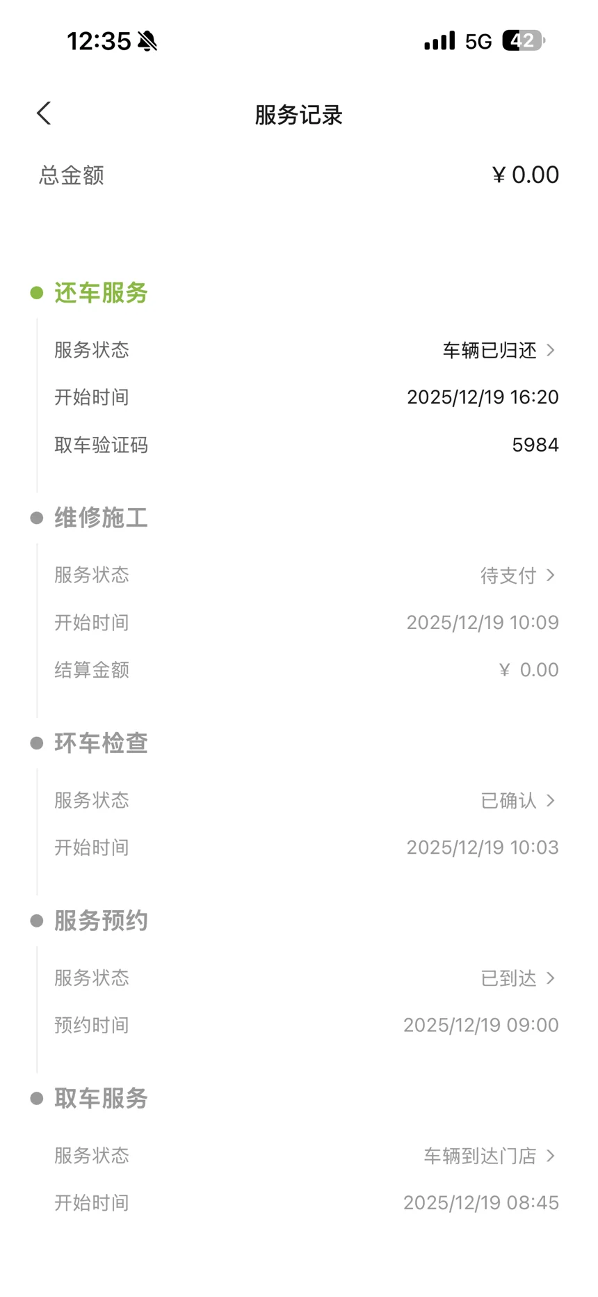 3.透明省心的全程体验:从预约、取车、检查到维修、还车,整个流程在APP的“服务记录”里一目了然,状态实时更新。把车交给他们后,完全可以安心去忙自己的事,流程结束后直接APP解锁开走,非常高效。
