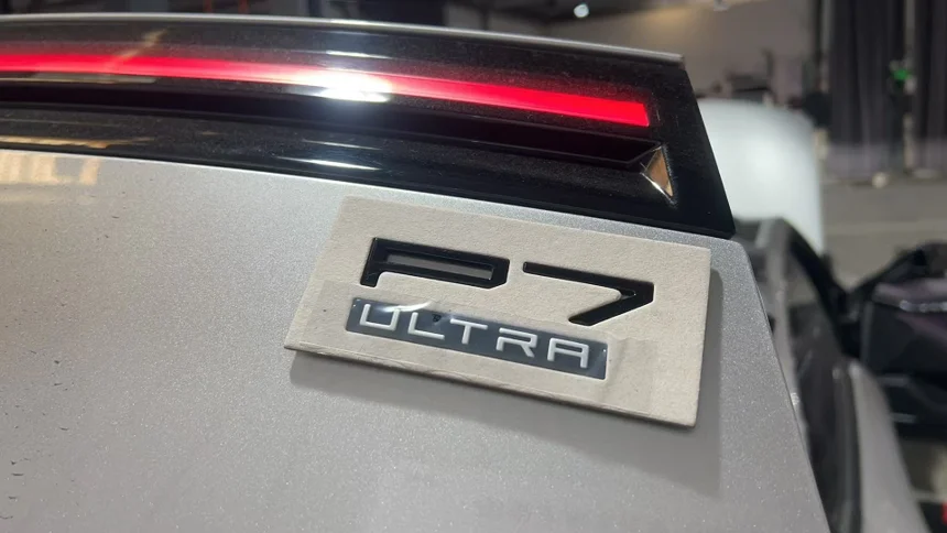 2. 无微不至的“健康检查”:师傅会仔细检测并调整轮胎胎压。冬季胎压至关重要,直接关系到安全和能耗,这个主动服务点很到位。给我的车标上加上了ultra标志,我的P7 ULTRA也做好了过冬准备。