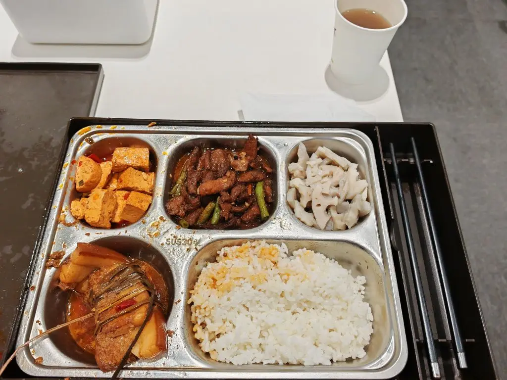 我刚好赶上饭点,工作人员主动邀请我吃免费车主午餐,两荤一素的家常搭配,热乎的红豆汤喝着超暖,完全解决了保养时的吃饭难题,比自己在家吃的还舒心~