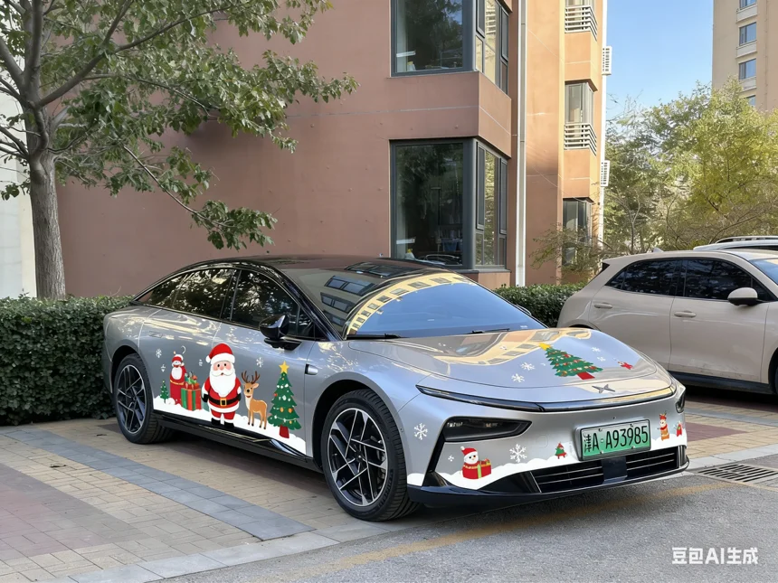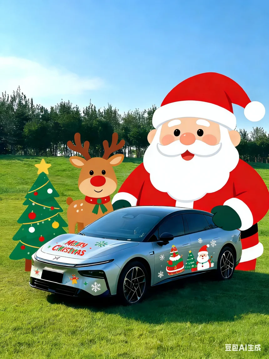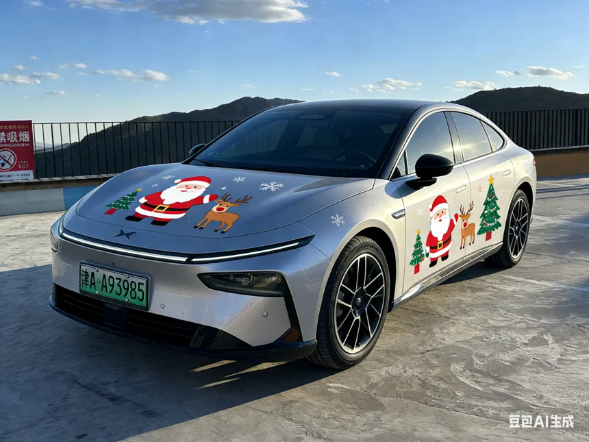 🎄✨ 我的小鹏P7+被圣诞老人“劫持”啦!连小鹿都来当车模了~