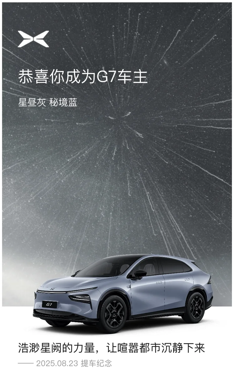 日子一天天过去,我始终没有放弃对拥有一辆车的期待。而命运似乎格外眷顾我,在2025年的某一天,我真的实现了这个愿望!当我第一次见到那辆崭新的小鹏G7时,内心的激动简直难以言表。它时尚的外观、流畅的线条,还有那充满科技感的内饰,无一不让我心动。坐进车内,触摸着精致的仪表盘,感受着舒适的座椅,我知道,这就是我一直梦寐以求的伙伴。