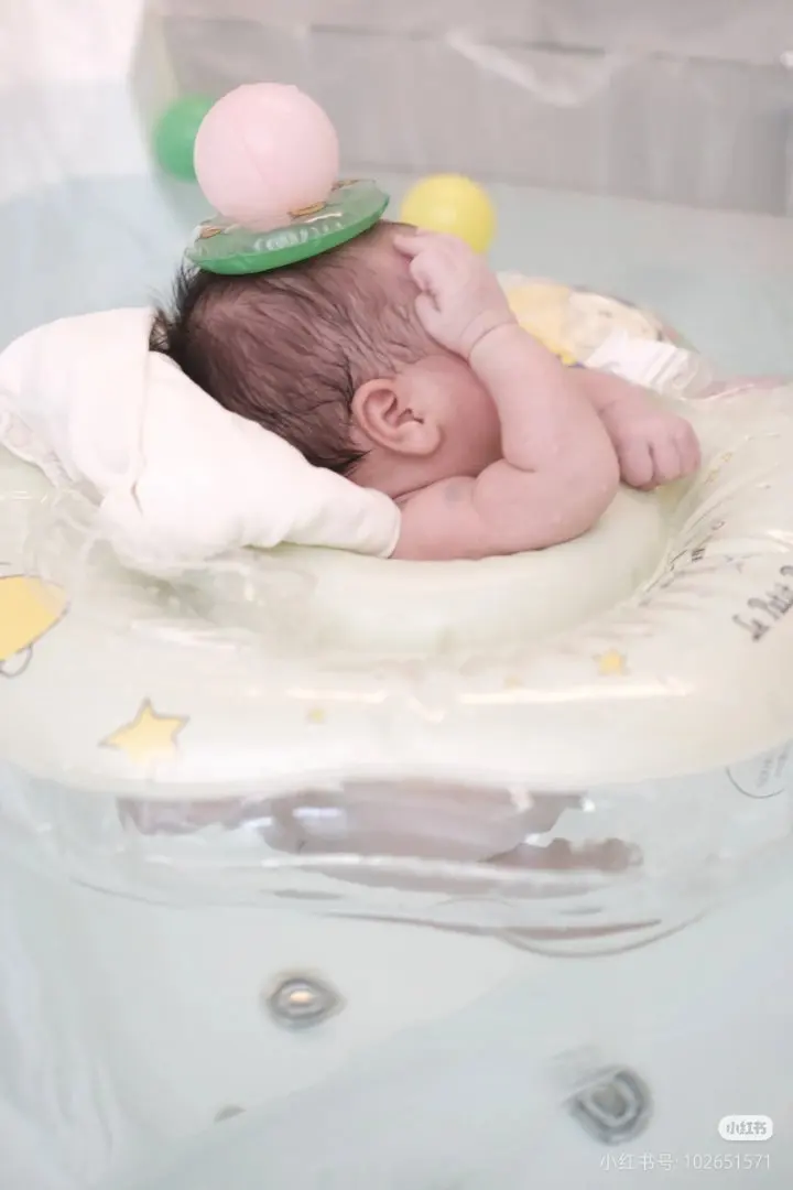 二宝月子中心毕业,直接解锁人生新副本——婴儿泳池!戴着泳圈的小奶团子,头顶粉粉小球,萌到我疯狂按快门~