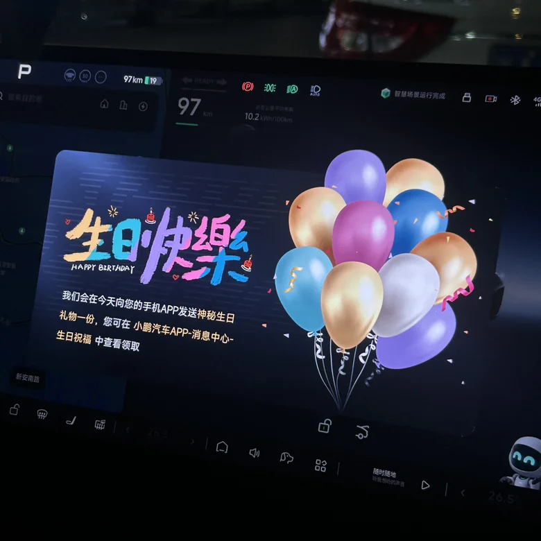今天刚好生日,开小鹏MONA一年行驶三万六千公里,家里油车少开两万公里,算下来怒省一万多元油钱。新年愿望是继续和鹏厂携手,享受智能出行,期待更经济、更绿色的每一程。