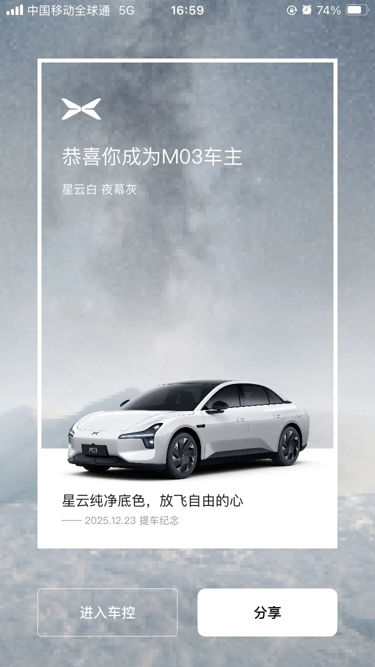 昨天自己一个人勇敢的去提车了,新的一年愿望希望就像小鹏的祝福语“鹏程万里” 一样!这就是我的生日礼物和新年礼物!一个超喜欢的大玩具!