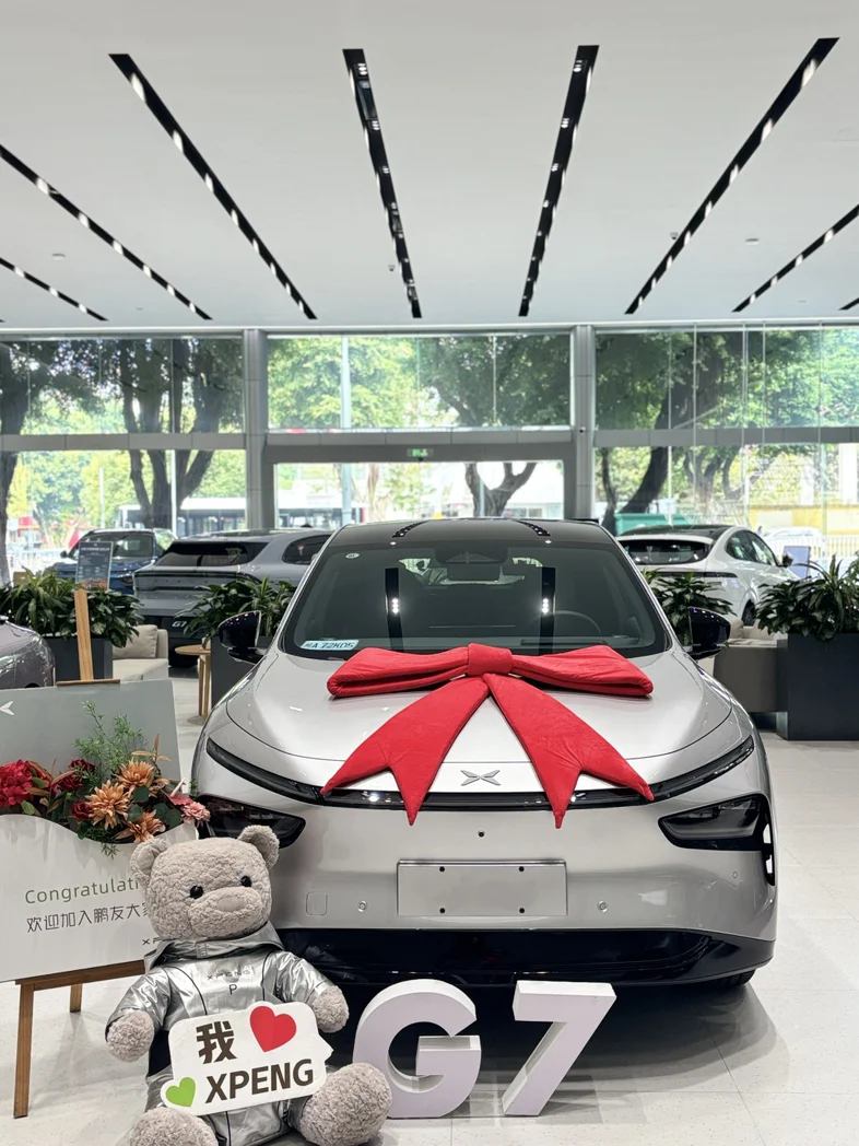 #我的提车作业# 小鹏g7提车啦!#有小鹏G7秋冬出游更从容# 从第一眼在4s店看到银色g7 一眼万年科技感十足 对比了几个品牌同价位同车型的车最好还是觉得小鹏最符合通勤、智驾、审美需求销售和交付小姐姐也很nice 盲盒小熊很可爱已经解锁智驾功能 期待更多😍😍😍😍