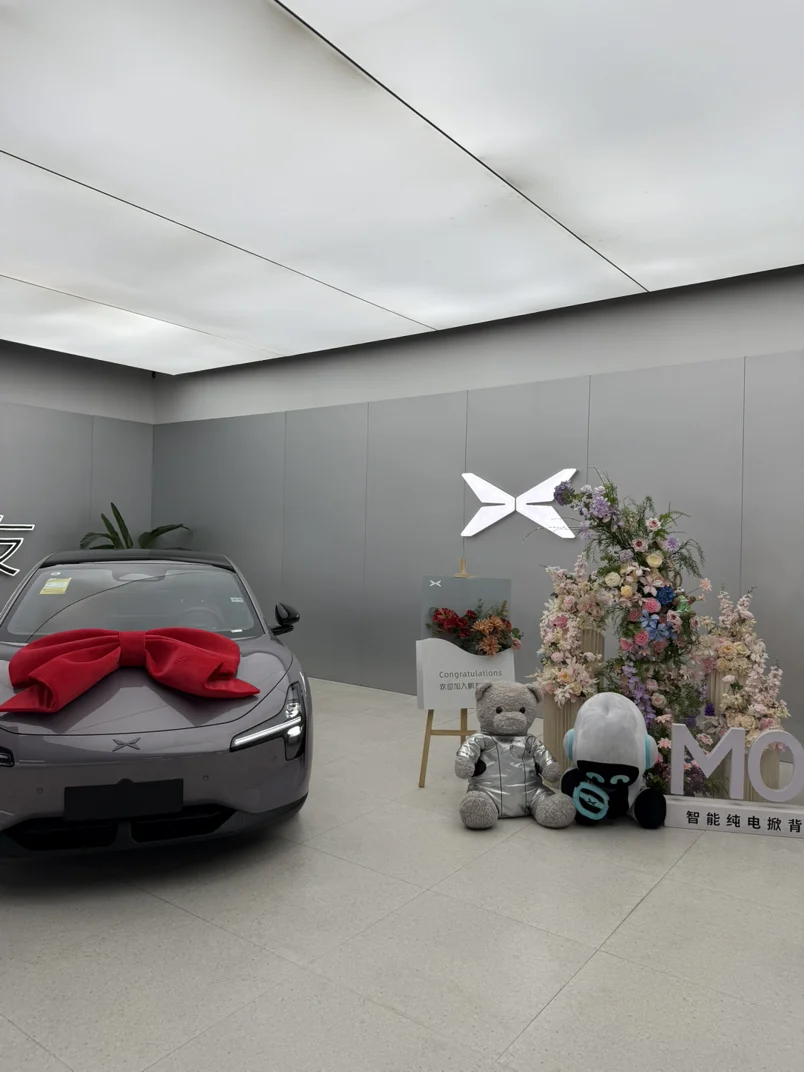走进交付中心,一眼就认出了它。销售小哥早已备好了鲜花和一个精致的“鹏友礼盒”,仪式感瞬间拉满。绕车检查漆面、轮胎,一切完美。签字、办理临牌,整个过程高效顺畅。当我接过那把精致的钥匙,坐进驾驶舱,指尖划过带有渐变缝线工艺的崭新内饰时,一种切实的拥有感与对未来生活的期待交织在一起。我特意拍下了它的第一张身份证:临牌号码,以及车内那块显示着“欢迎主人”的15.6英寸超清大屏。