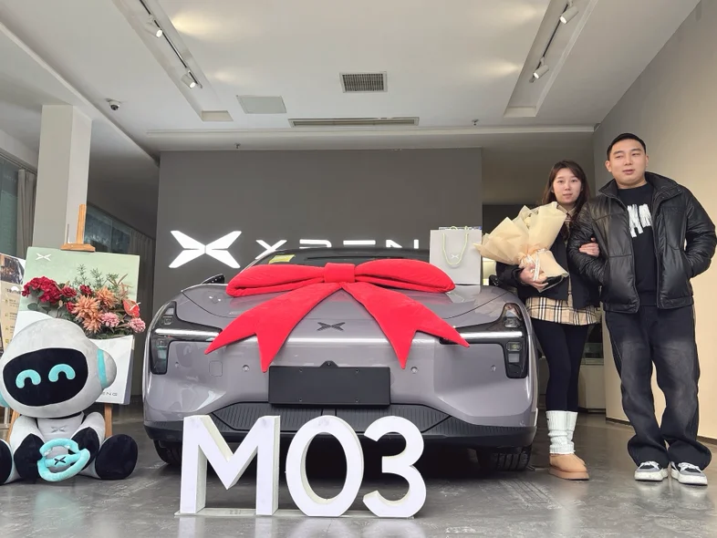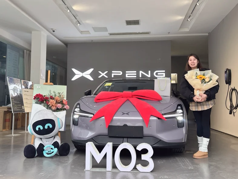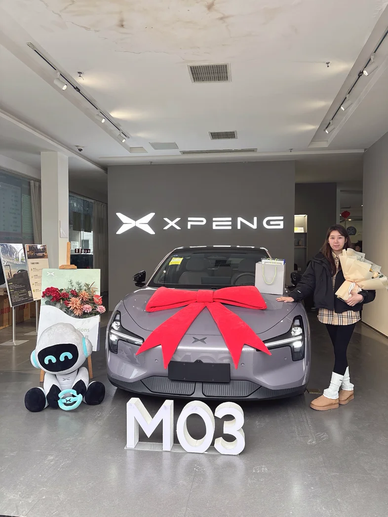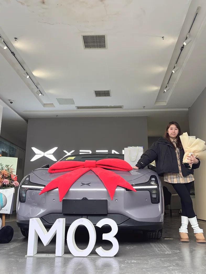 终于到我提车啦✌️提车啦!我的小鹏M03 502Max版终于到家🥳等了这么久,今天终于把我的“新伙伴”接回家啦~从订车到提车的每一天都在期待,看到它的那一刻,所有等待都值得!以后无论是通勤还是周末出游,都能说走就走啦~很喜欢小鹏的交付仪式,满满的仪式感,还有可爱的太空熊和鲜花,太贴心了~ 特别感谢我的销售~~~从此,开启和我的小鹏M03的美好旅程啦!#小鹏M03 #提车日记 #小鹏汽车 #新能源汽车