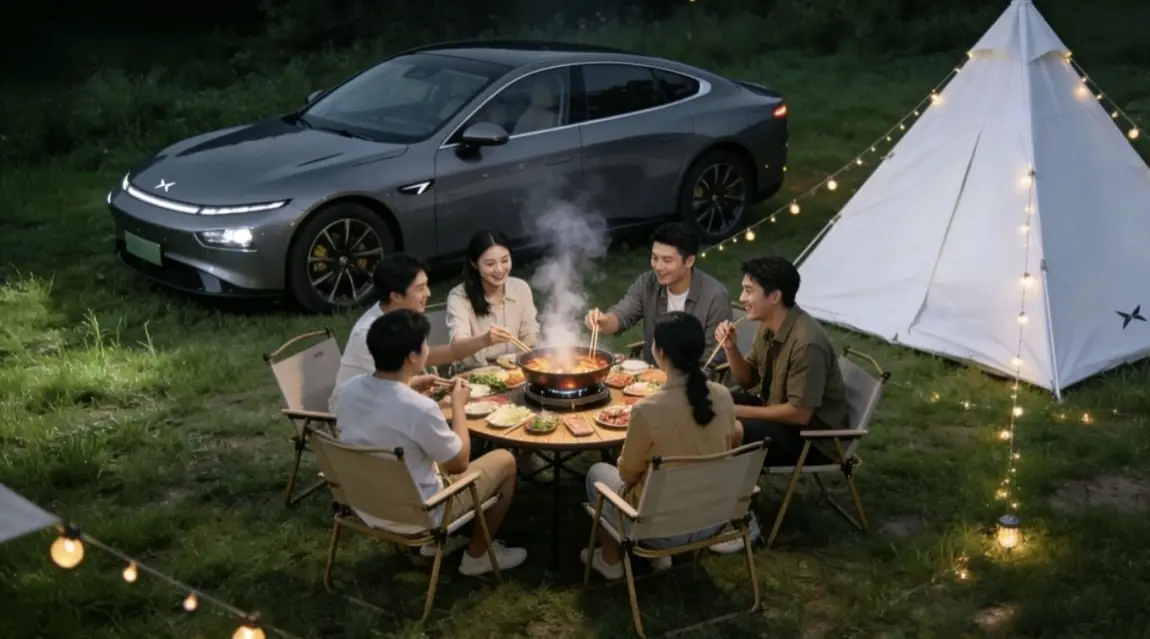 #冬至的最佳打开方式# 【冬日电量告急,友情满格在线】冬至夜最长,但我们有光。开小鹏P7,载一车暖意出发——后备箱里塞满食材,中控屏选好歌单,暗格里抽出放电枪,轻轻一接,旷野忽然亮起客厅的灯。芦苇荡在风里晃,火锅在电磁炉上咕嘟,车机安静供电,电量数字缓慢跳动:“还够沸腾三小时,够讲八个旧笑话,够把星空看到忘记时间。”