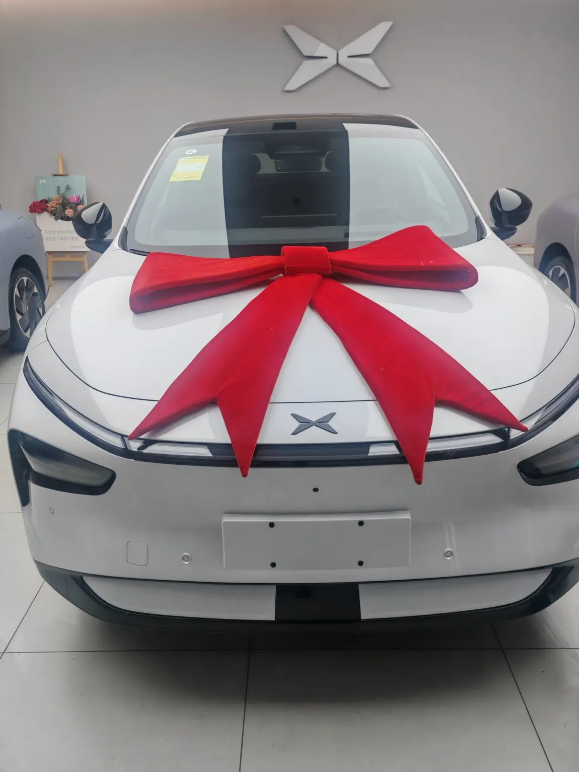 #我的提车作业# 提车一周,终于有时间写提车作业了,提车那天是工作日,下班晚,本想请假稍早下班,没想到交付中心工作人员居然愿意加班等我,我可以不用请假了,为该服务点赞。一进交付中心就看到我干净整洁的大白站在C位,并挂上了喜庆的大红领带。随后我就在工作人员的陪同下进行车辆验车,仔细检查一番无任何问题,接着后台帮我绑定车机,并跟我讲解车辆的基本使用方法和注意点,工作人员全程细致讲解,最后给我和大白来了一张第一次相遇的合影,再次点赞。车辆已满电续航 三次点赞👍。一次美好的提车过程,相信小鹏会给我日后的生活带来更多美好的经历。