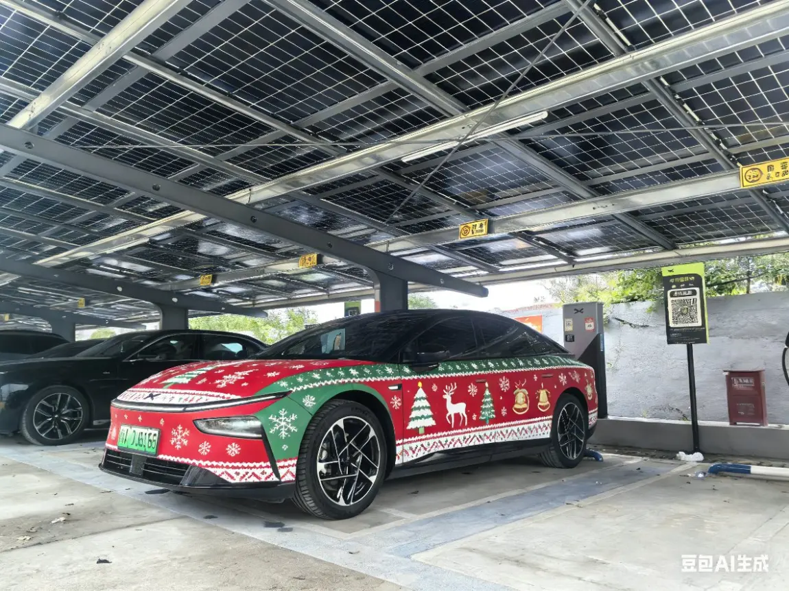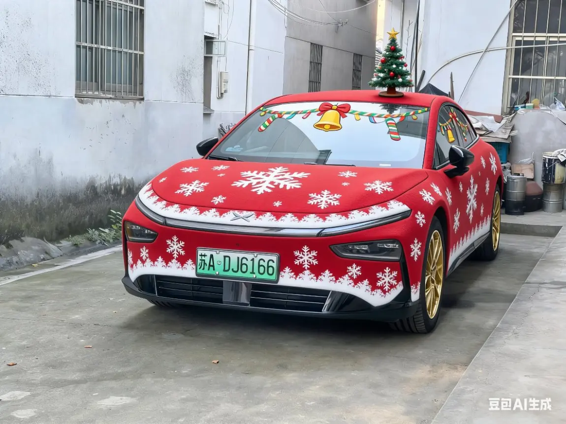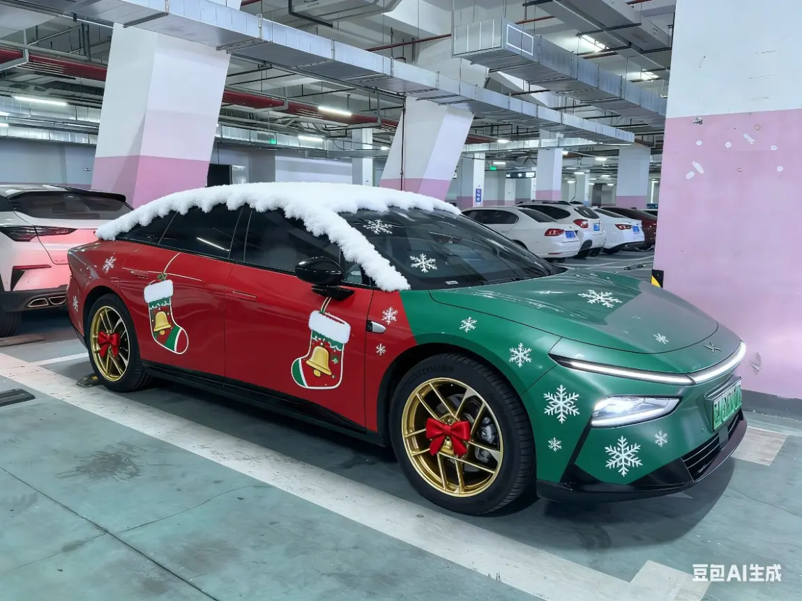 #我的圣诞魔力座驾# 今天圣诞节了,我的小鹏P7+也要换上圣诞战袍去送礼物了。🎄当小鹏P7+遇上圣诞,直接把节日氛围拉满!谁能拒绝一辆身披圣诞盛装的智能座驾呢?整车被红绿金三色的圣诞元素铺满,车顶装点着迷你圣诞树,车身两侧有圣诞老人驾着驯鹿车穿梭的画面,还有雪花、礼物盒的图案点缀其间,走在路上就是移动的圣诞打卡点🎁