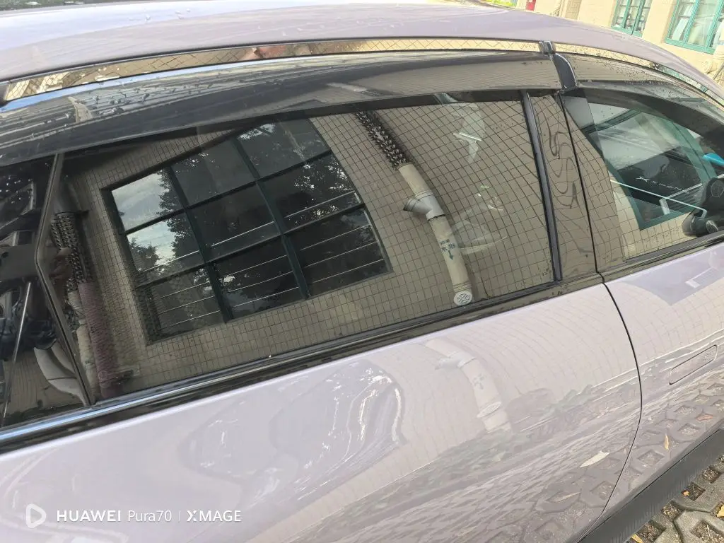 自己加装了两侧雨帘、尾翼、后视镜雨帘。