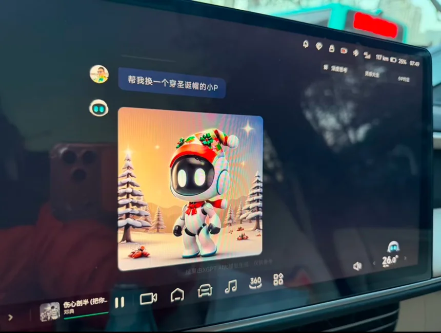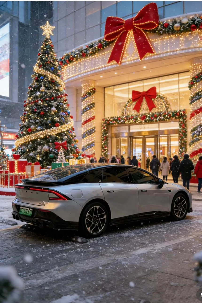 #我的圣诞魔力座驾# 和小鹏P7+过的第一个圣诞节🎄🎄圣诞限定座驾上线!我的小鹏P7+变身移动童话屋✨冰晶白车身缀满松枝花环与圣诞帽,车顶麋鹿角俏皮摇晃,轮毂套上圣诞袜环超吸睛~ 语音唤醒“嗨小P,圣诞快乐”,中控屏立刻飘起梦幻雪景,连充电提示音都变成铃铛声🔔 座椅加热一开,暖橙氛围灯铺满座舱,后排塞满圣诞礼物和姜饼人玩偶,5门5座的宽绰空间刚好容下满心欢喜。 开着它穿梭在挂满彩灯的街头,雪粒落在流线型车身上,每一张都是自带滤镜的圣诞大片~ 这个冬天最暖的浪漫,是小鹏P7+陪我把圣诞的甜,藏进每一段旅程里🎅@鹏友俱乐部小向导