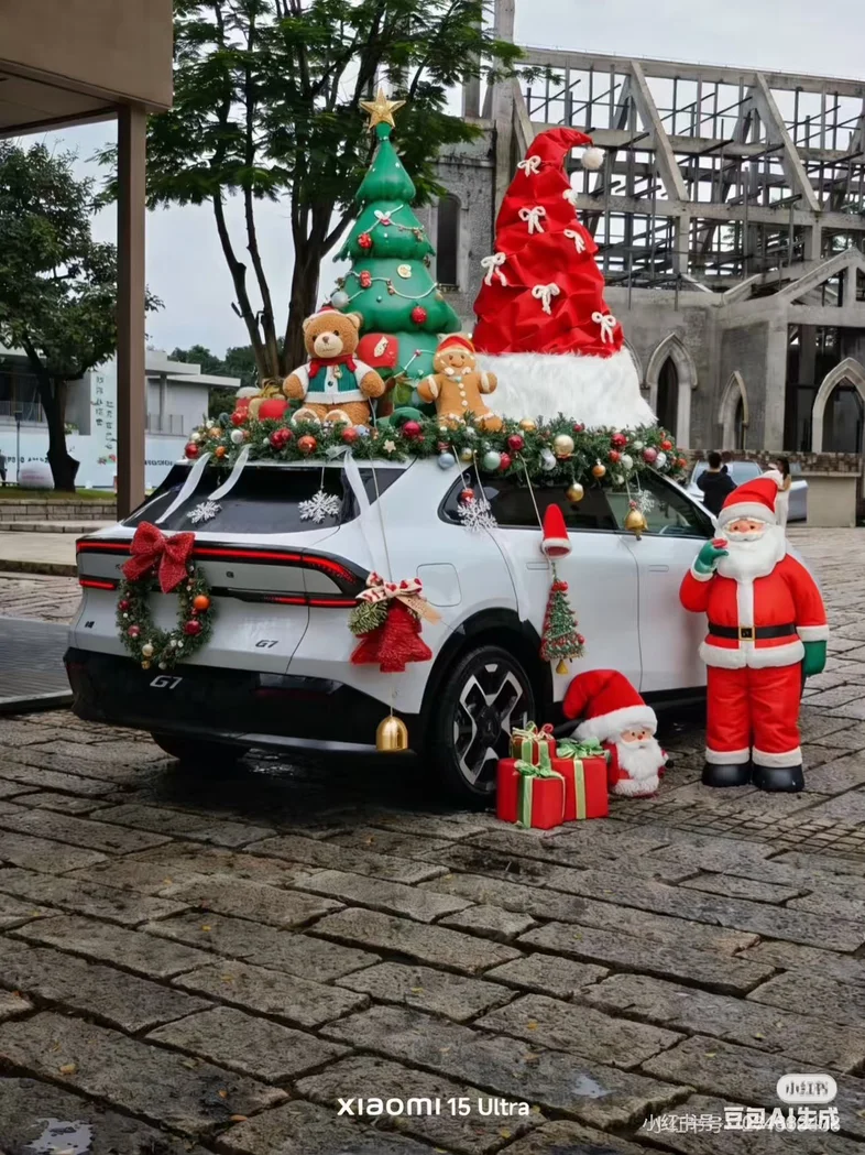 #我的圣诞魔力座驾# 2026快到啦,用ai生成两张圣诞主题的小鹏G7。为G7穿上节日盛装!圣诞元旦双旦来袭,我用ai生成了圣诞帽和圣诞树来点缀装饰小鹏g7。是不是看起来很不错呢,你们也去试试吧!期待你们充满创意的作品!